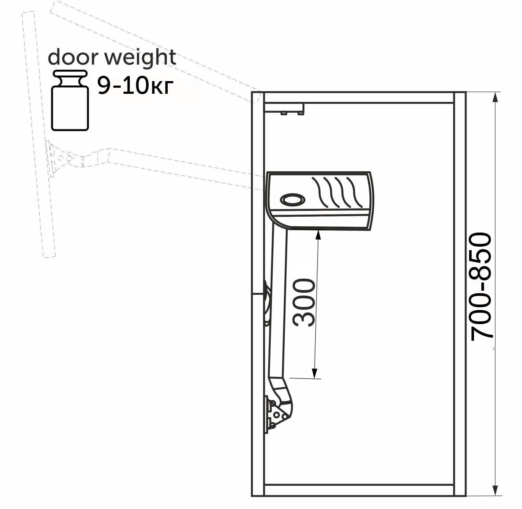 Подъемный механизм E рассчитан на вес фасада 9,1-10,0 кг