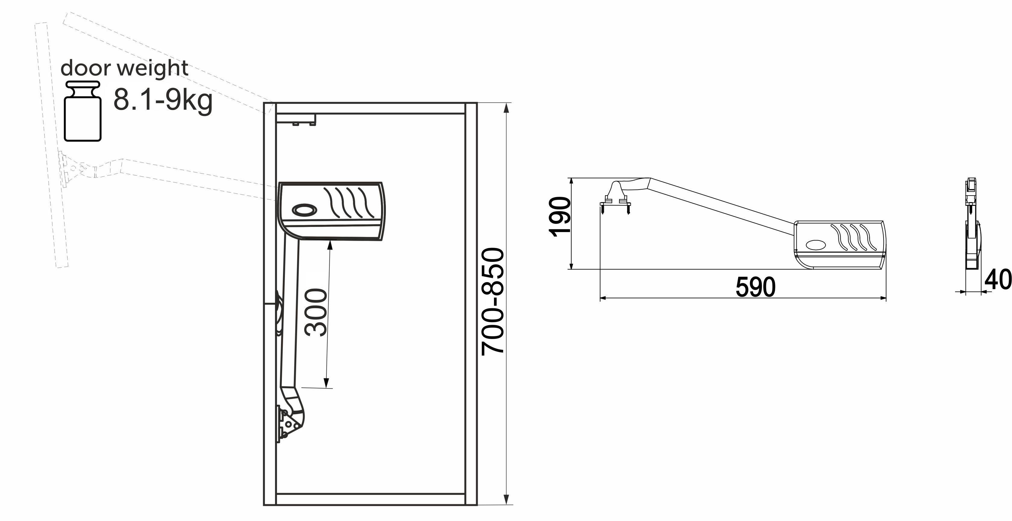 Подъемный механизм D рассчитан на вес фасада 8,1-9,0 кг.
