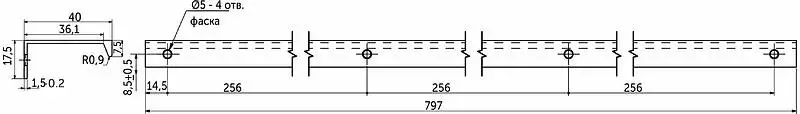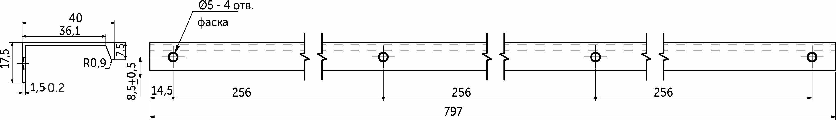 Размер 768 мм под сверление, общая длина 797 мм, цвет матовый черный.