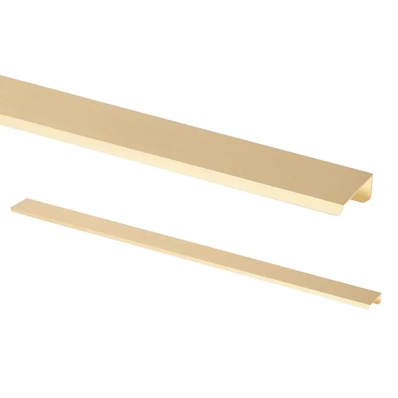 Алюминиевая ручка-профиль, накладная, общая длина 3м, цвет брашированное золото блеск. Для открывания/закрывания мебельных фасадов и ящиков, являются декоративным элементом.