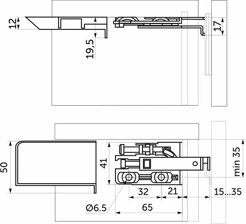 Кухонный навес предназначен для крепления ящиков верхнего яруса к стене. Данный навес является регулируемым по высоте на +/- 4 мм и по глубине +/- 5 мм (глубина max 22 мм). Нагрузка на пару - 160 кг. В зависимости от места крепления выделяют левые и правые навесы, и, соответственно, левые и правые заглушки. Монтируется на шину (не входит в комплект).