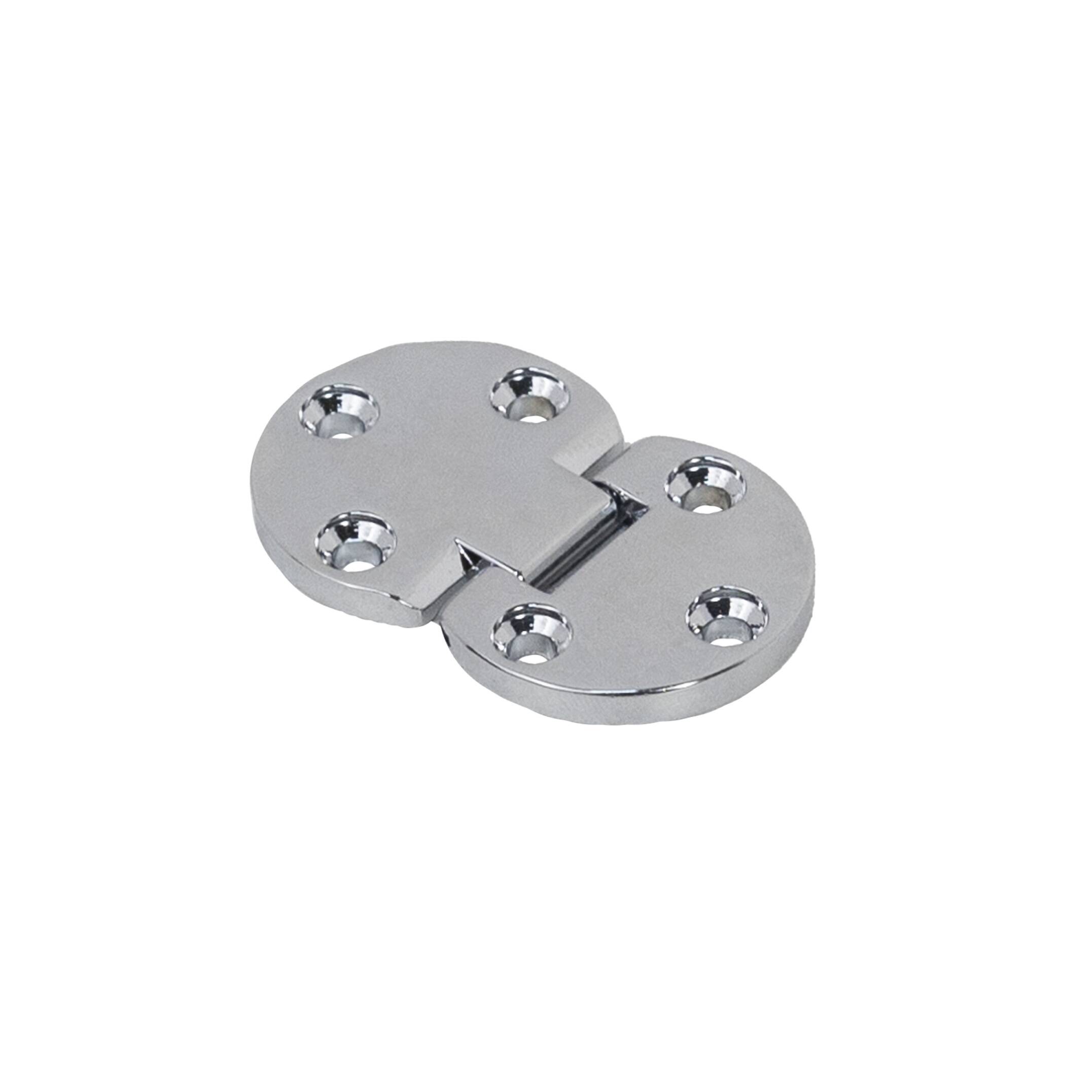 Петля накладная барная используется преимущественно для монтажа створок, открывающихся снизу вверх или сверху вниз. По своей конструкции данная петля внешне напоминает карточную, однако имеет чуть более округлую форму. Материал – цинковый сплав.