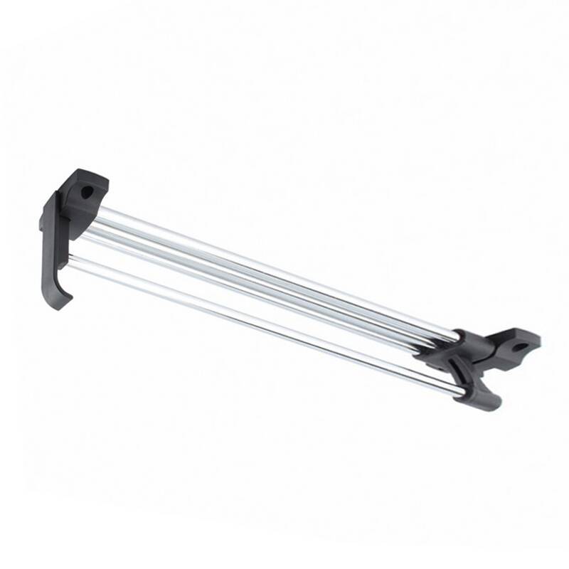 Вешалка изготовлена из цельнометаллического прута d8мм. Крепиться на горизонтальные поверхности. Используется для размещения вешалок-плечиков с одеждой.