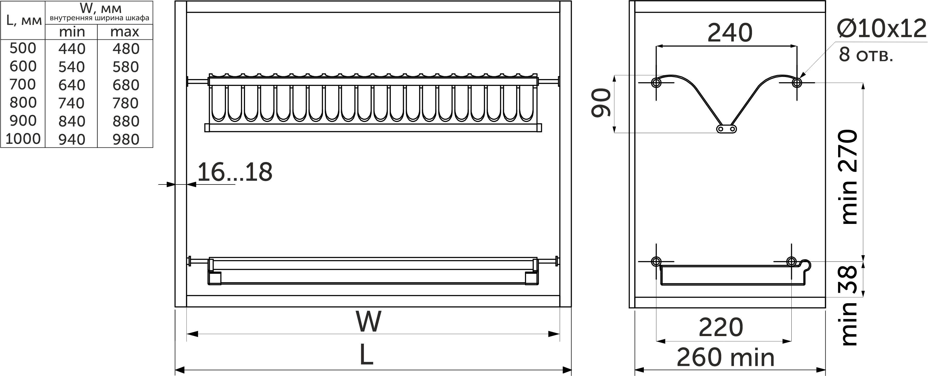 -подходит для установки в ящик как с ДСП 18 мм, так и с ДСП 16 мм.