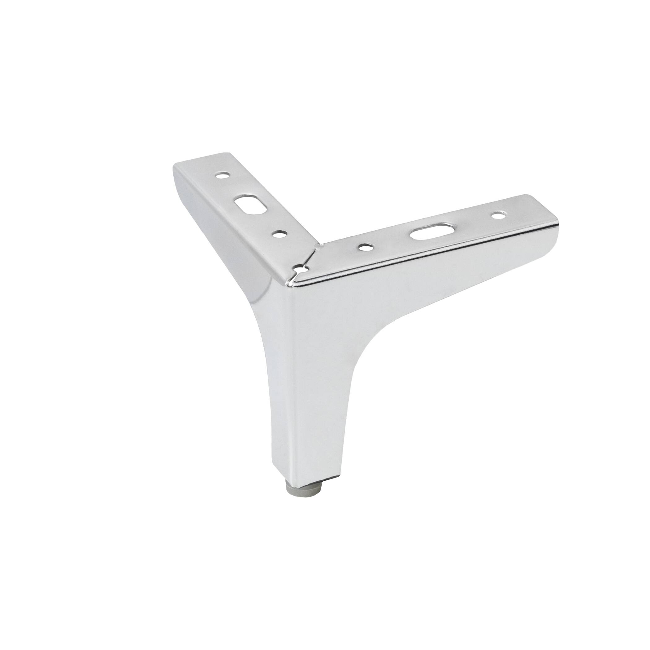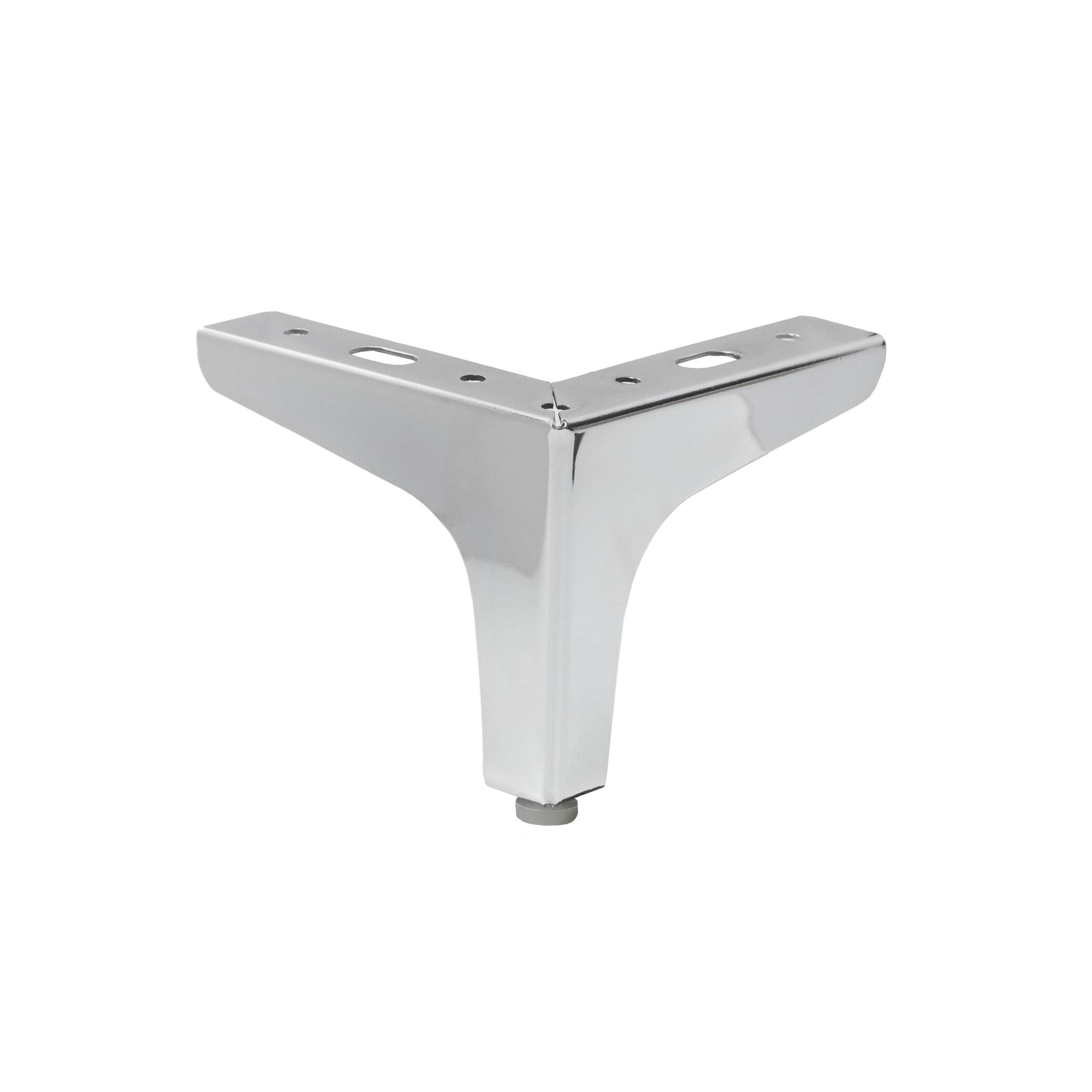 Опора мебельная металлическая угловая для мягкой и корпусной мебели. Высота 100мм. Изготовлена из стали. Цвет - хром. Рекомендуемая максимальная нагрузка на одну опору - 50кг.