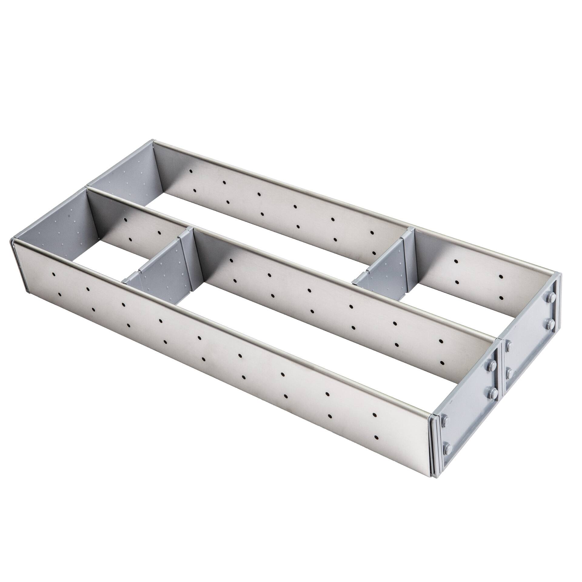 Система внутренних разделителей для ящиков из нержавеющей стали, предназначена для ящика с кухонными аксессуарами, состоит из нескольких ячеек, что позволяет организовать пространство ящика.