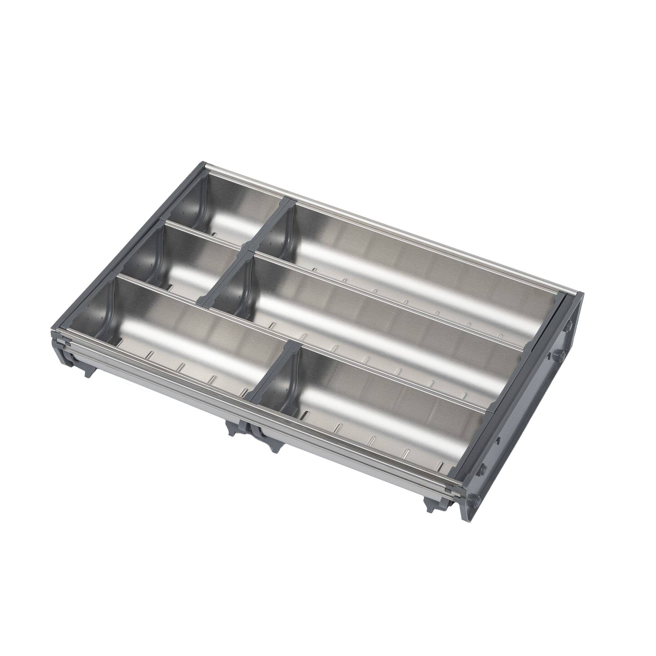 Система внутренних разделителей для ящиков из нержавеющей стали, предназначена для ящика со столовыми приборами, сборные лотки разной ширины, что позволяет организовать внутреннее пространство ящика.