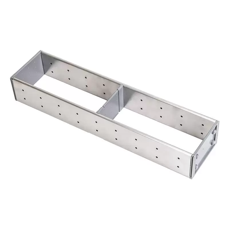 Система внутренних разделителей для ящиков из нержавеющей стали, предназначена для ящика с кухонными аксессуарами, состоит из нескольких ячеек, что позволяет организовать пространство ящика.