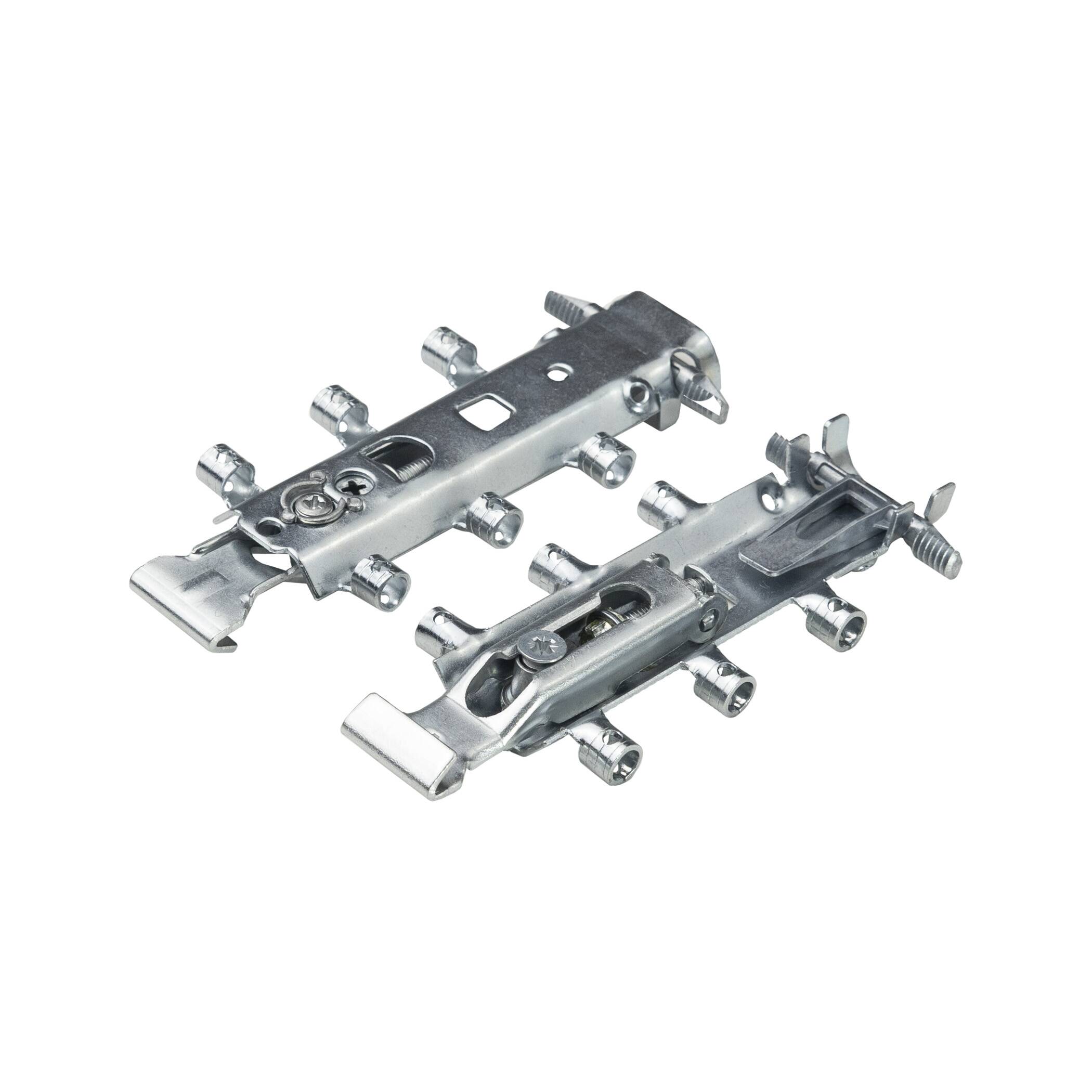 Навес предназначен для крепления ящиков верхнего яруса к стене. Данный навес является регулируемым по высоте на +/- 9 мм и по глубине +/- 5 мм. Нагрузка на пару - 150 кг. В комплект входят 2 навеса, 2 белые заглушки и монтажная шина. Монтаж в отверстия 9,5*12, фиксация на саморезы 3,5*20. При смещении задней стенки от 16 мм