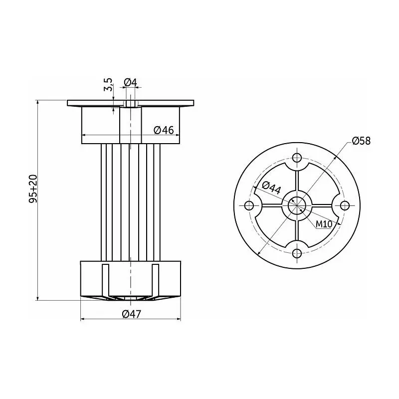 Нагрузка на опору - 168кг. Материал - Полипропилен. Опора регулируется по высоте. Только под саморезы!