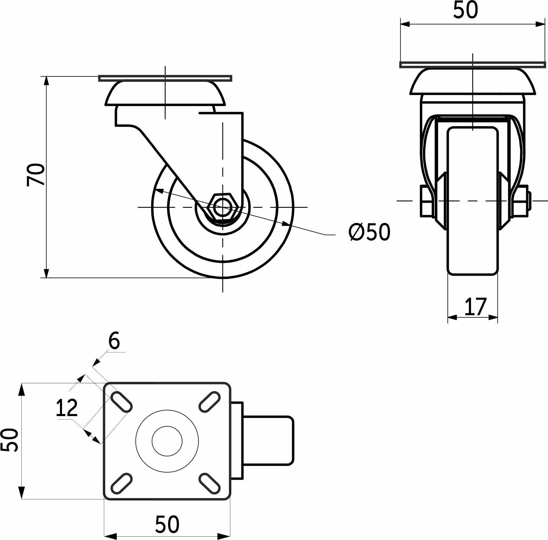 Колесо меб. TECH d50 h70 с площадкой, серый AKS тип2