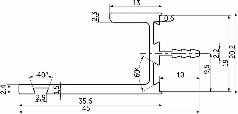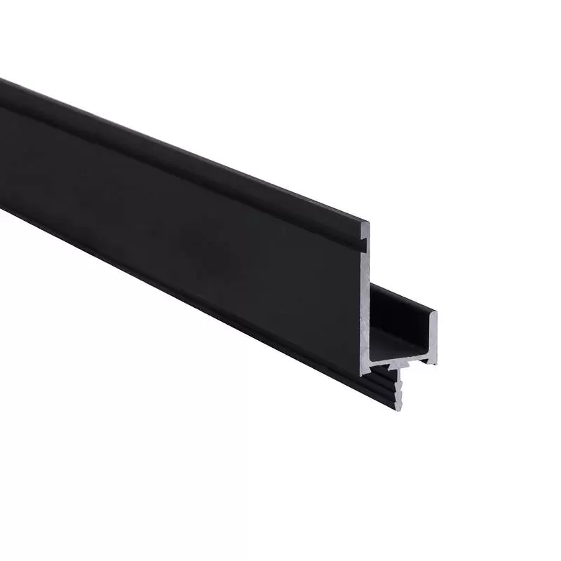 Алюминиевая ручка-профиль, врезная, L-образная, под толщину ДСП 18мм, общая длина 4м (полезная длина профиля 3,95м), цвет черный, анодировка.