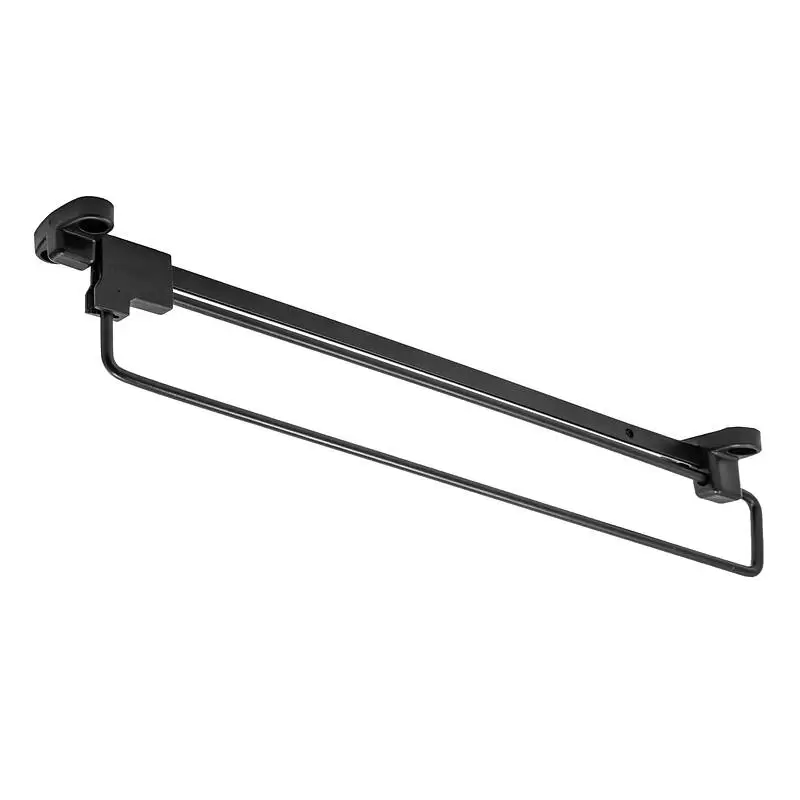 Вешалка изготовлена из цельнометаллического прута d 5 мм. Может крепиться на горизонтальные поверхности. Используется для размещения вешалок-плечиков с одеждой