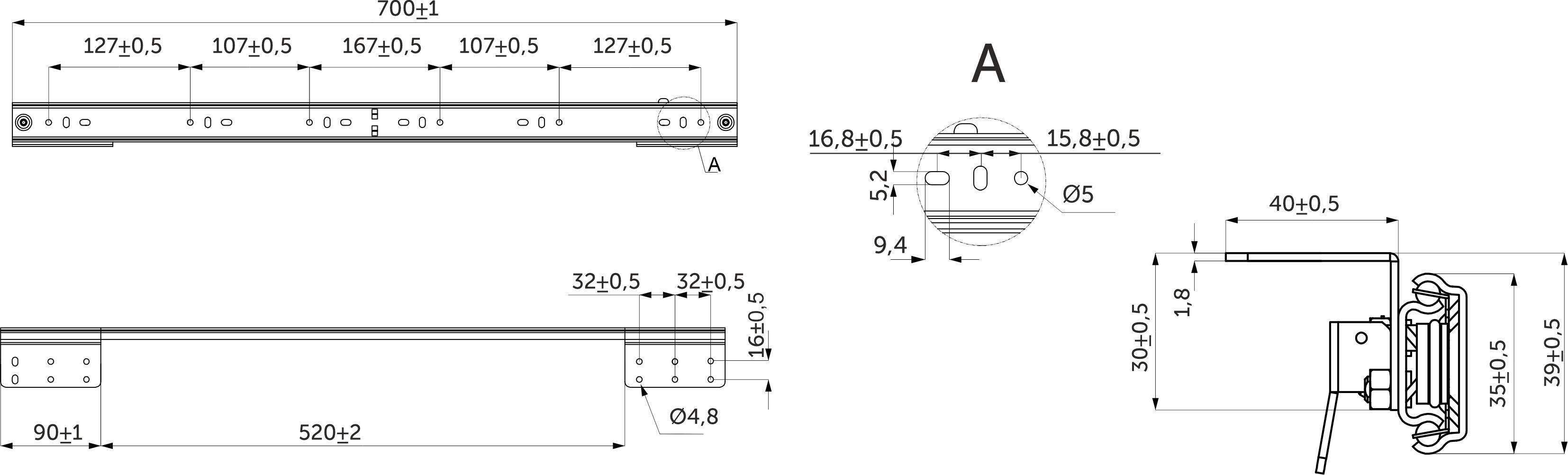 Для таких механизмов рекомендуется проектировать вылет полустолешницы в размер половины каретки. Например, длина каретки - 80 см, соответственно вылет полустолешницы – 40см.