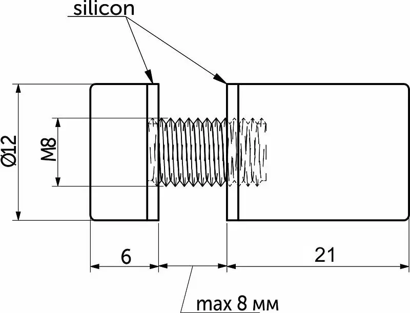 Размер винта для крепления - M8, общий диаметр 12мм.