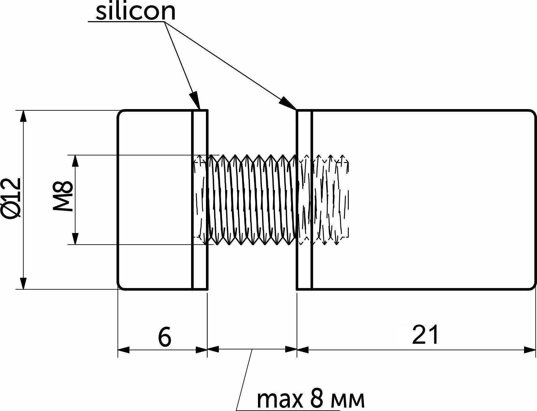 Максимальная толщина стекла - 8мм.