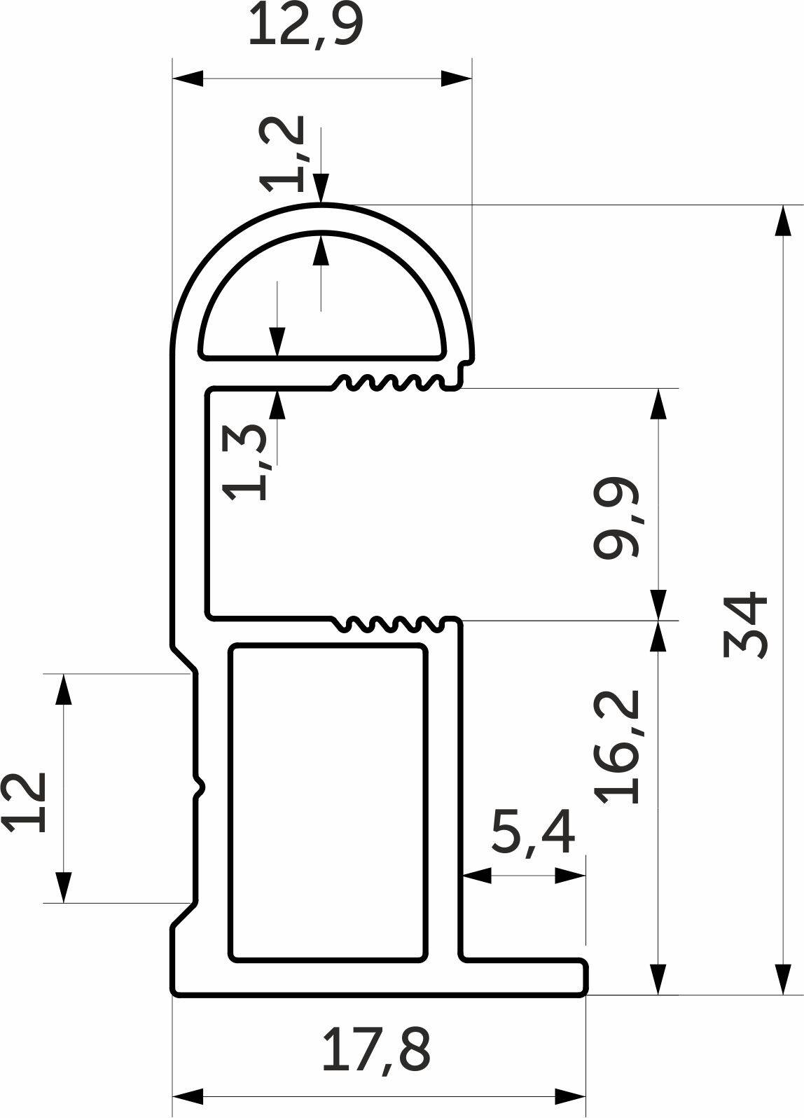 Используется в качестве вертикального профиля ручки в раздвижной узкой системе шкафа-купе. Защищает торцы дверного полотна от соприкосновения с боковыми стенками шкафа и дополнительно фиксирует ЛДСП, зеркало, стекло, другие декоративные элементы.