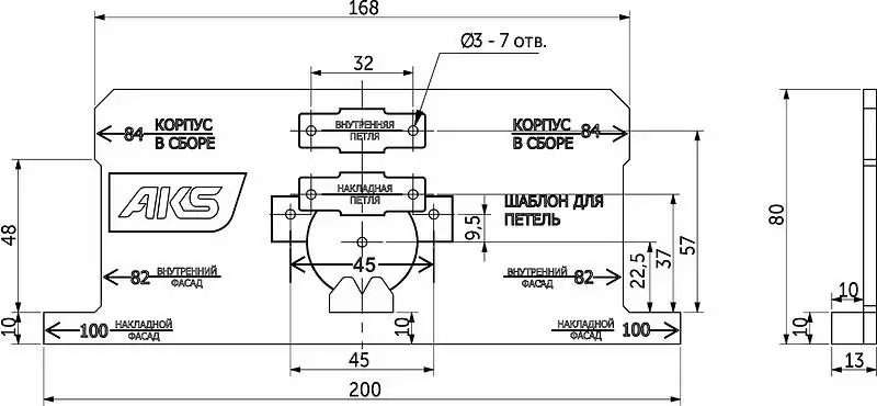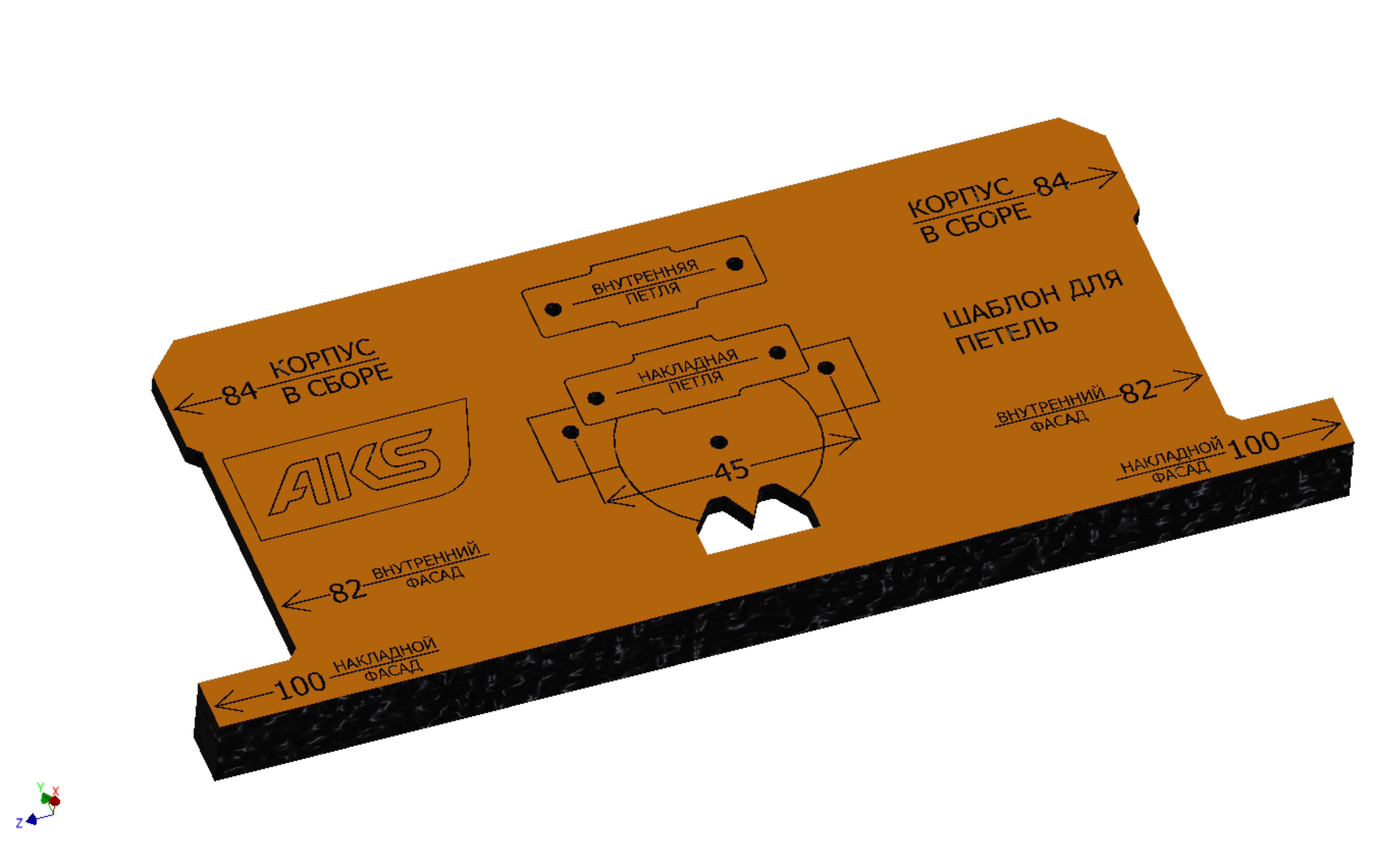 Для петель с присадкой 45 мм. Диаметр отверстий - 3 мм.