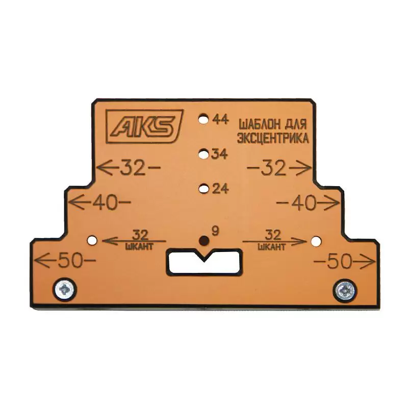 Шаблон для разметки и присадки под эксцентрик позволяет произвести разметку и присадку эксцентрика. Изготовлен из ламинированного текстолита толщиной 3мм. В упорной планке установлены три втулки под сверло 8 мм. Упорная планка из ламинированного текстолита.