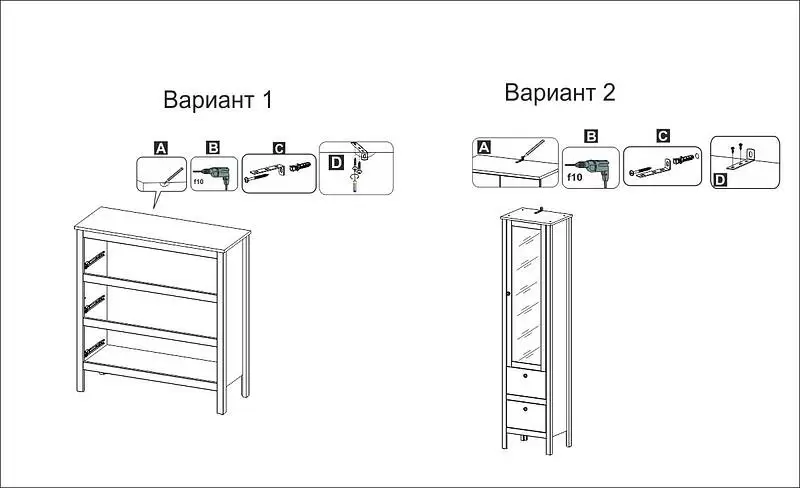 Угловой соединитель по своей сути является металлическим уголком, который служит для крепления элемента мебели к стене для предотвращения опрокидывания мебели, обеспечивая безопасность эксплуатации данной мебели. К стене монтаж происходит, как правило, с помощью дюбеля и шурупа (нужно приобретать дополнительно). Существует 2 способа монтажа данного соединения: наружный (уголок прикручивается сверху крышки или полки изделия и крепится к стене) и внутренний или скрытый (уголок монтируется снизу крышки или полки изделия с / без предварительной фрезеровкой и крепится к стене).
