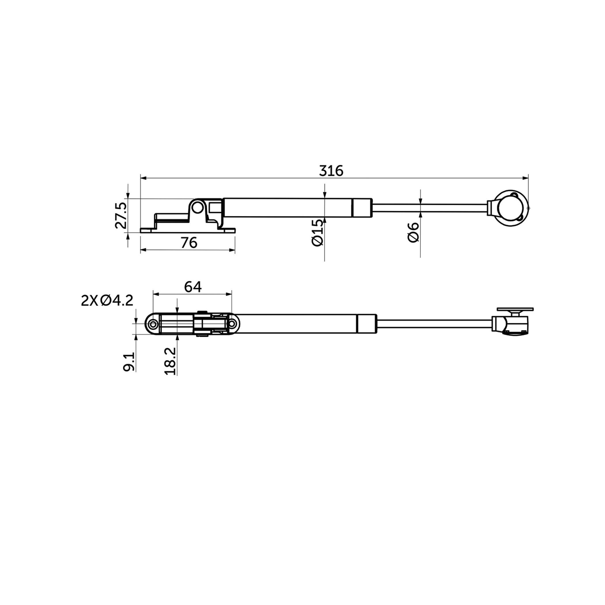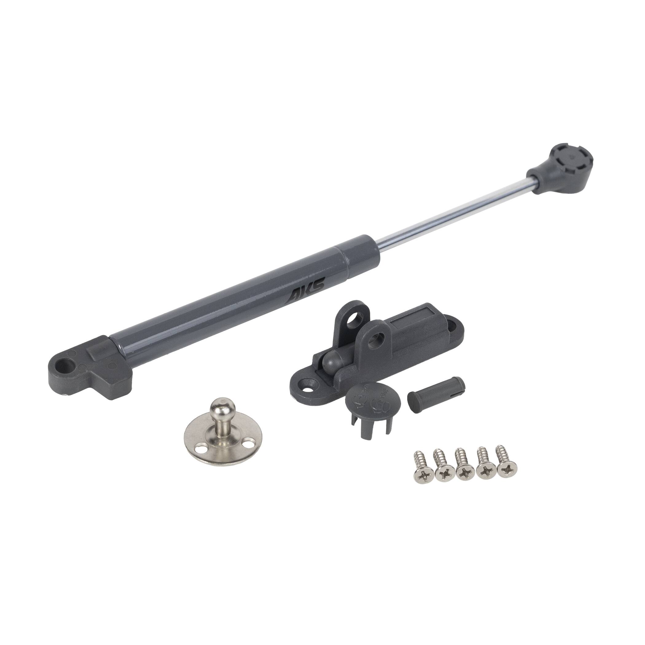 Подъемный механизм для верхней базы кухни, представляет собой трубку с газо-масляной смесью и штоком с системой уплотнителей и пыльников. Мощность 80 Ньютонов. Обеспечивает открытие фасада до необходимой точки фиксации, а также встроенным демпфером, обеспечивающем плавное и бесшумное закрытие. 60 000 рабочих циклов. Комплектация: подъемник, крепление двери, крепление корпуса, крепление алюм.двери, заглушка (2 шт), саморезы 3,5х13 мм (5 шт)