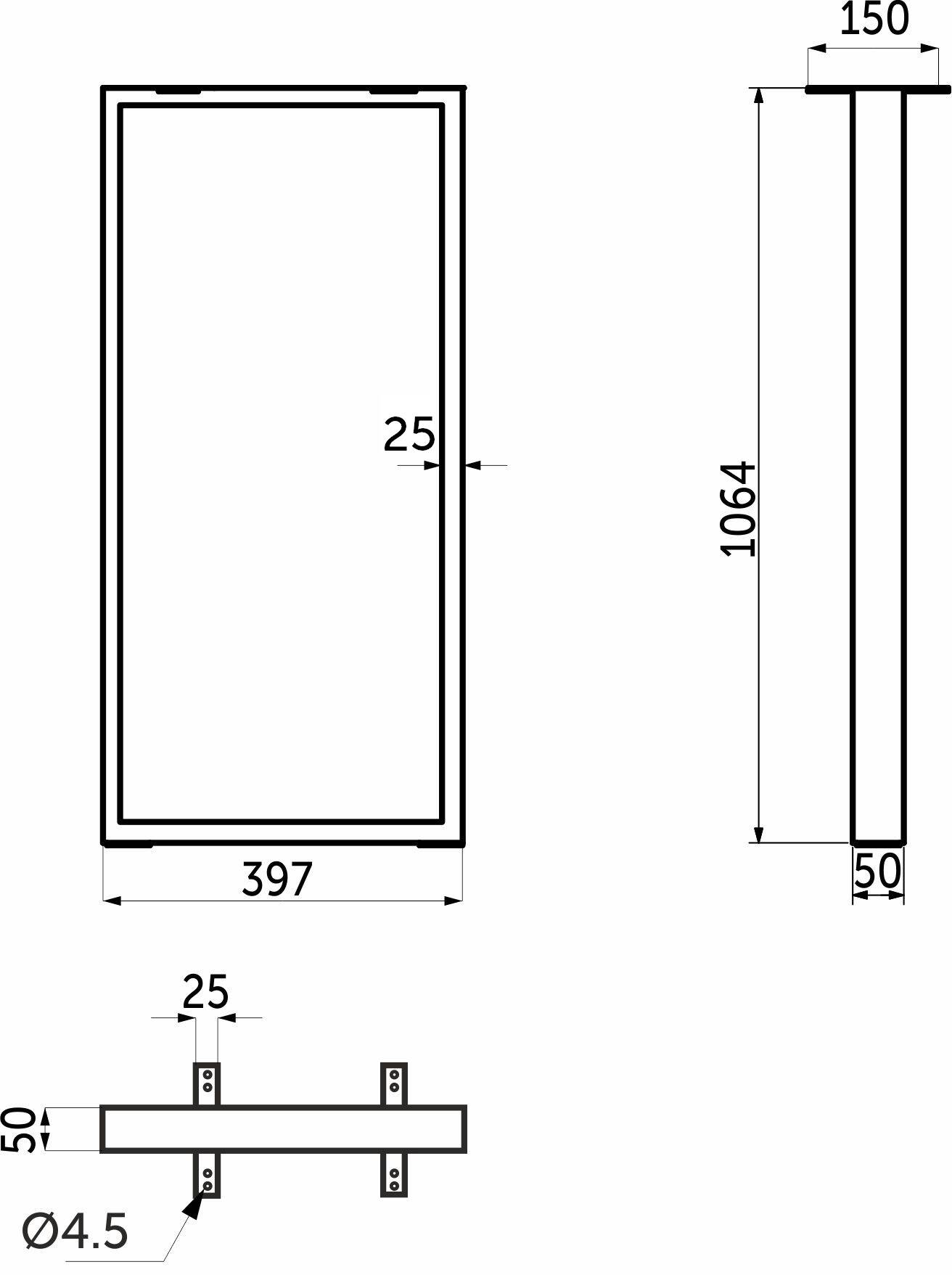 Подстолье изготовлено из металлического профиля 50*30мм. Толщина профиля 1,5мм.