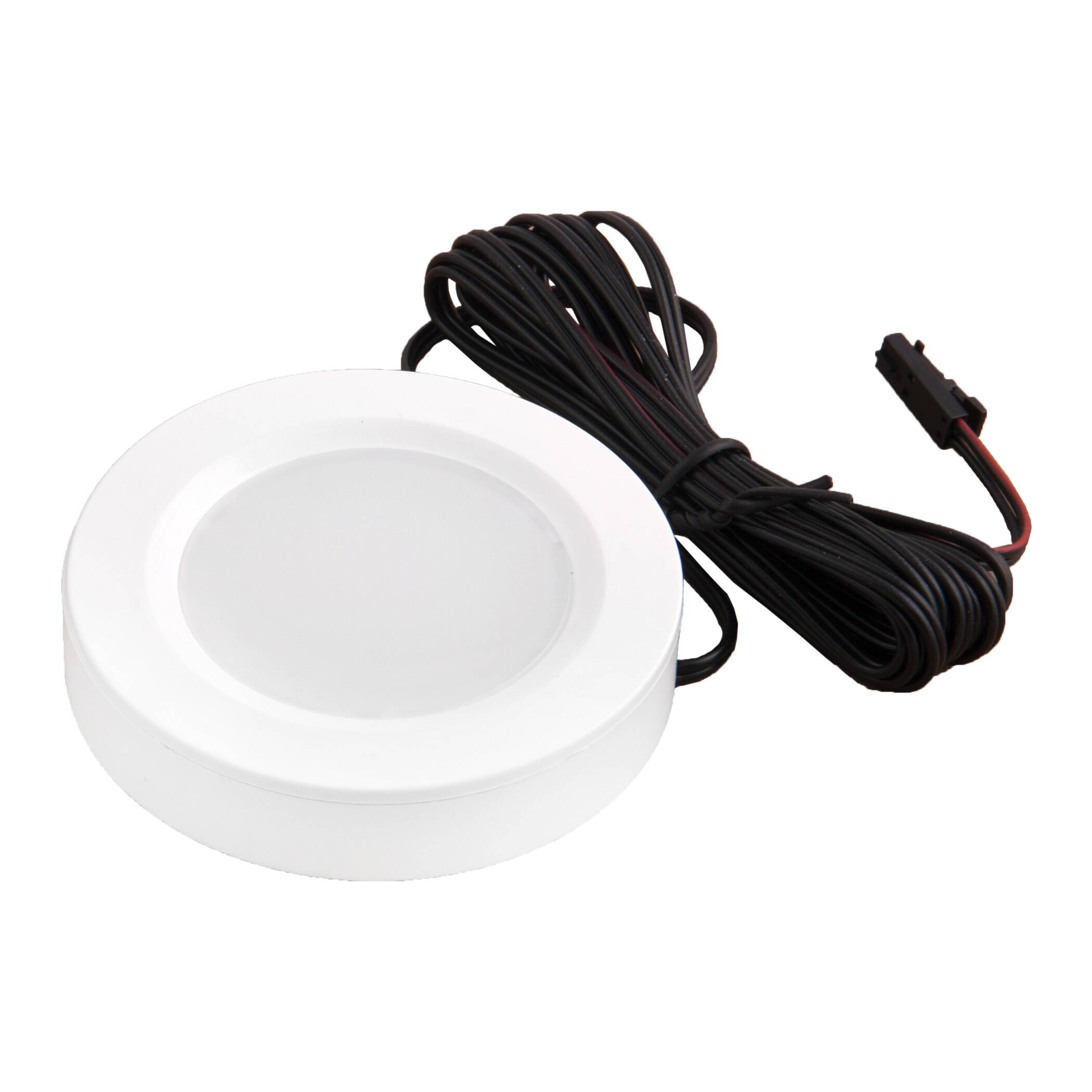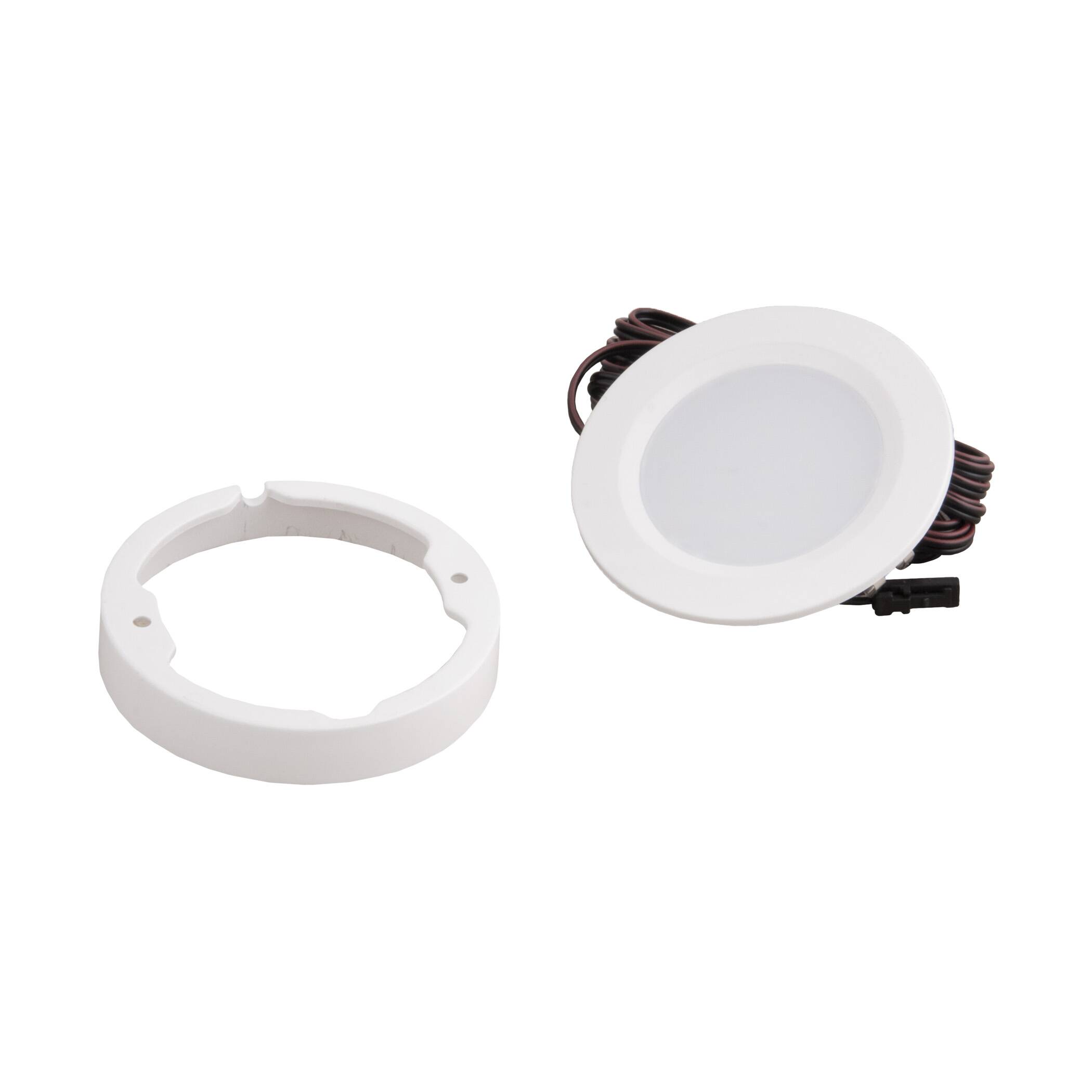 Длина мини-коннектора 2 м., световой поток 180 Lm, мощность 2W, напряжение 12V, степень защиты IP20, цвет корпуса белый, цвет свечения холодный белый (6000К), матовый рассеиватель, размеры накладного 70х14.6 мм, размеры врезного 60х10,5 мм.