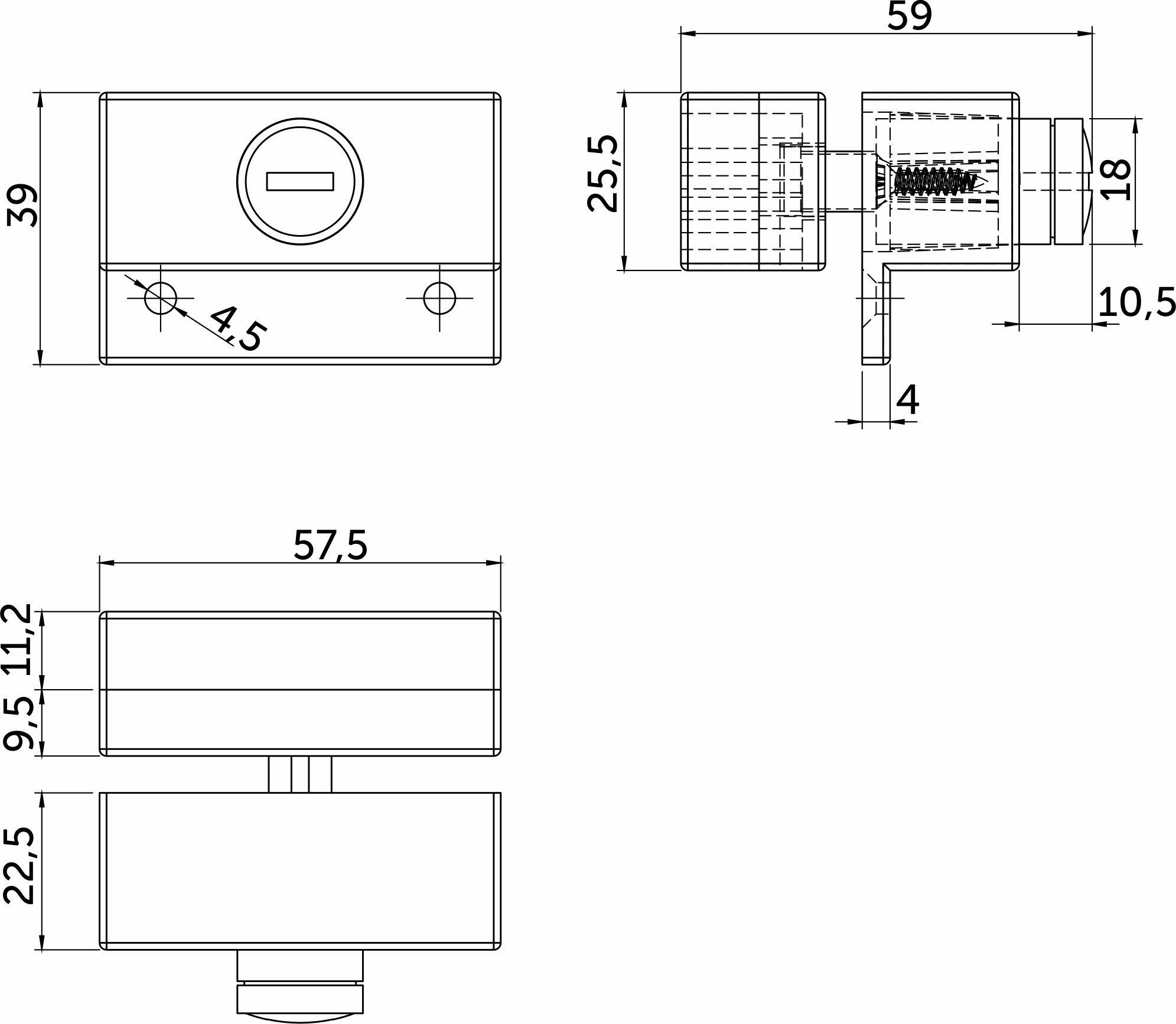 Специализированный замок для шкафов-купе. Подходит для монтажа только на ассиметричный профиль ручки. Состав: пластик + метал