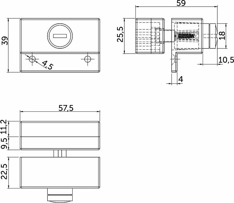 Специализированный замок для шкафов-купе. Подходит для монтажа только на ассиметричный профиль ручки. Состав: пластик + метал