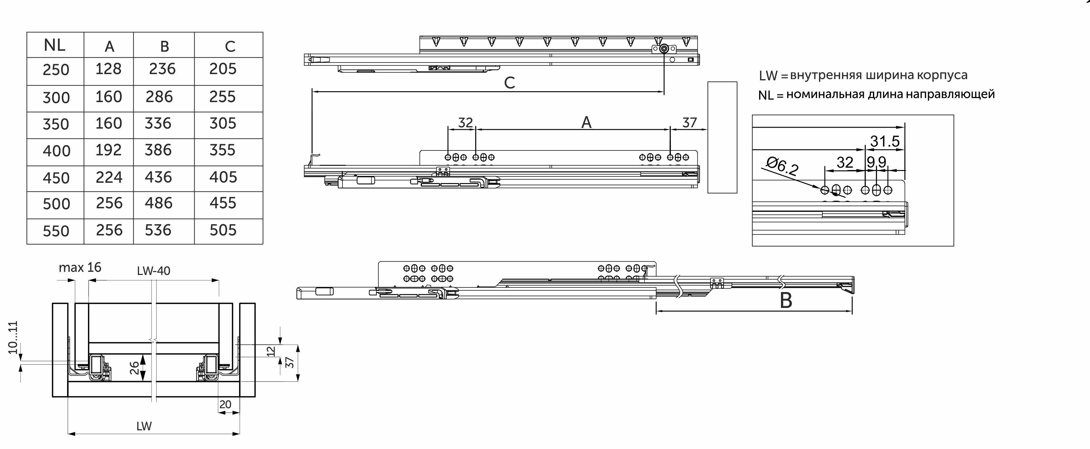 Qtype - это недорогие и качественные направляющие для рационального использования внутреннего пространства ящика. Их изящный дизайн и надежная конструкция делают их идеальным выбором для создания современного и минималистичного интерьера. Благодаря скрытому монтажу направляющих, ваш интерьер будет выглядеть аккуратным и эстетичным, а функциональность будет сохранена на высоком уровне. Направляющие позволяют установить ящик с минимальными зазорами между корпусом мебели и боковинами ящика (4 мм), а также с минимальной потерей посадочной высоты (26 мм). Минимальная глубина корпуса, необходимая для установки - 463 мм.
