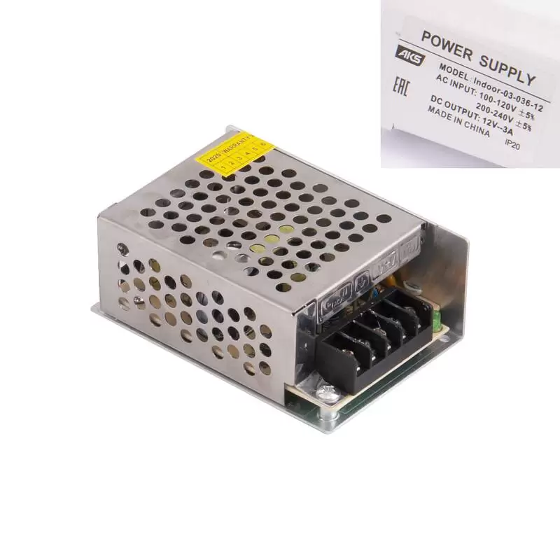 Используется для понижения рабочего напряжения с 220 В переменного тока до 12 В постоянного для светодиодных лент и светодиодных светильников.