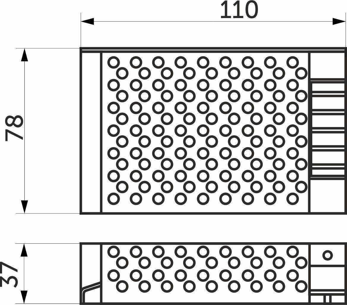 Используется для понижения рабочего напряжения с 220 В переменного тока до 12 В постоянного для светодиодных лент и светодиодных светильников.