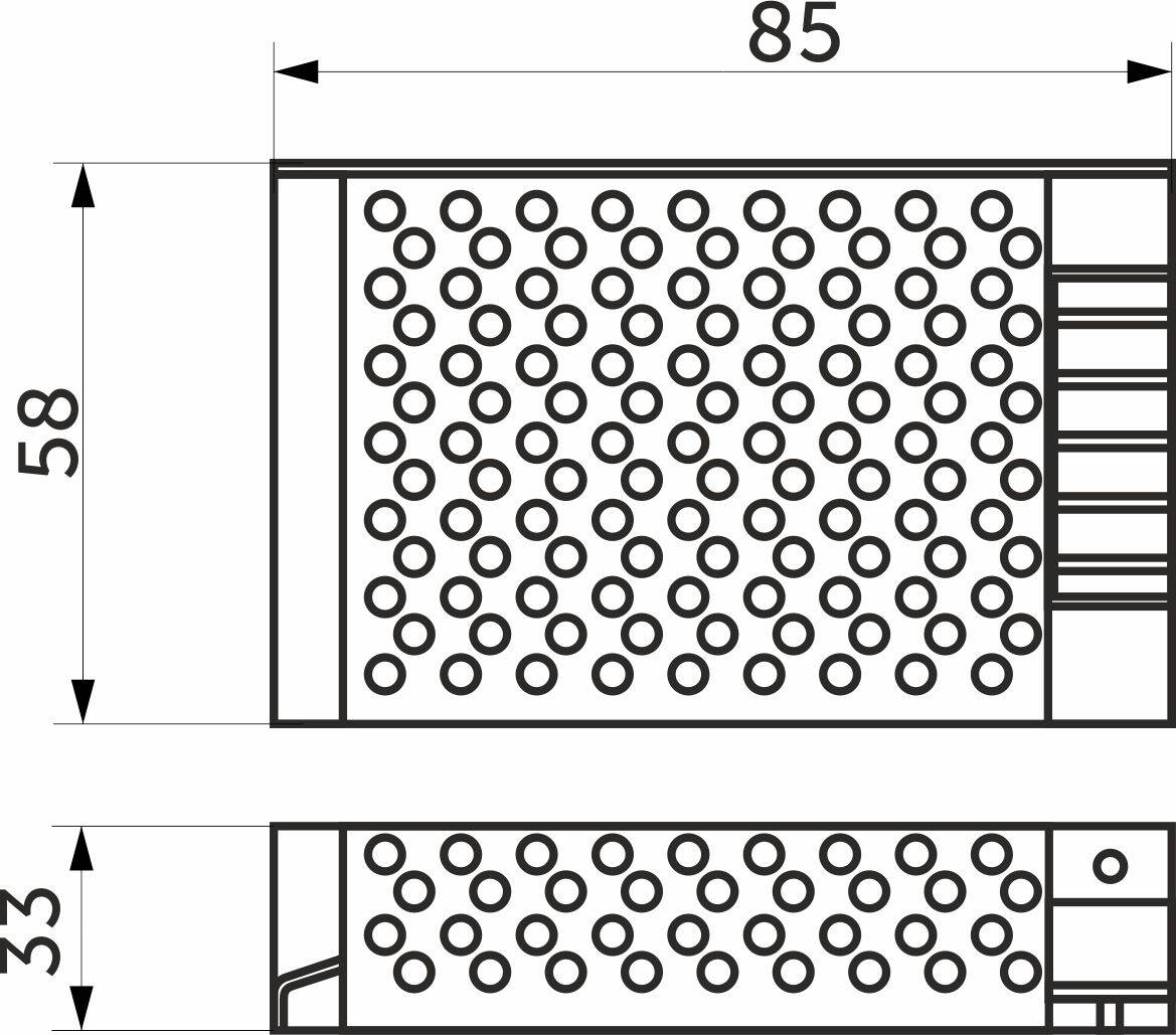 Используется для понижения рабочего напряжения с 220 В переменного тока до 12 В постоянного для светодиодных лент и светодиодных светильников.