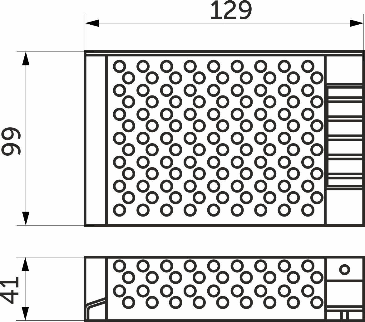 Используется для понижения рабочего напряжения с 220 В переменного тока до 12 В постоянного для светодиодных лент и светодиодных светильников.