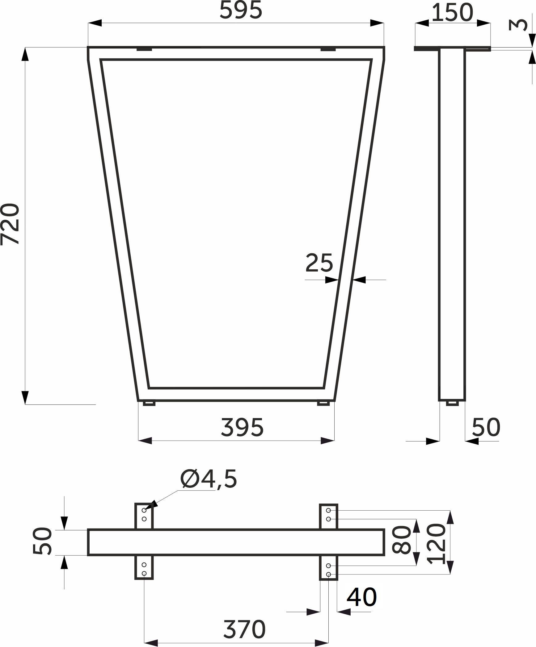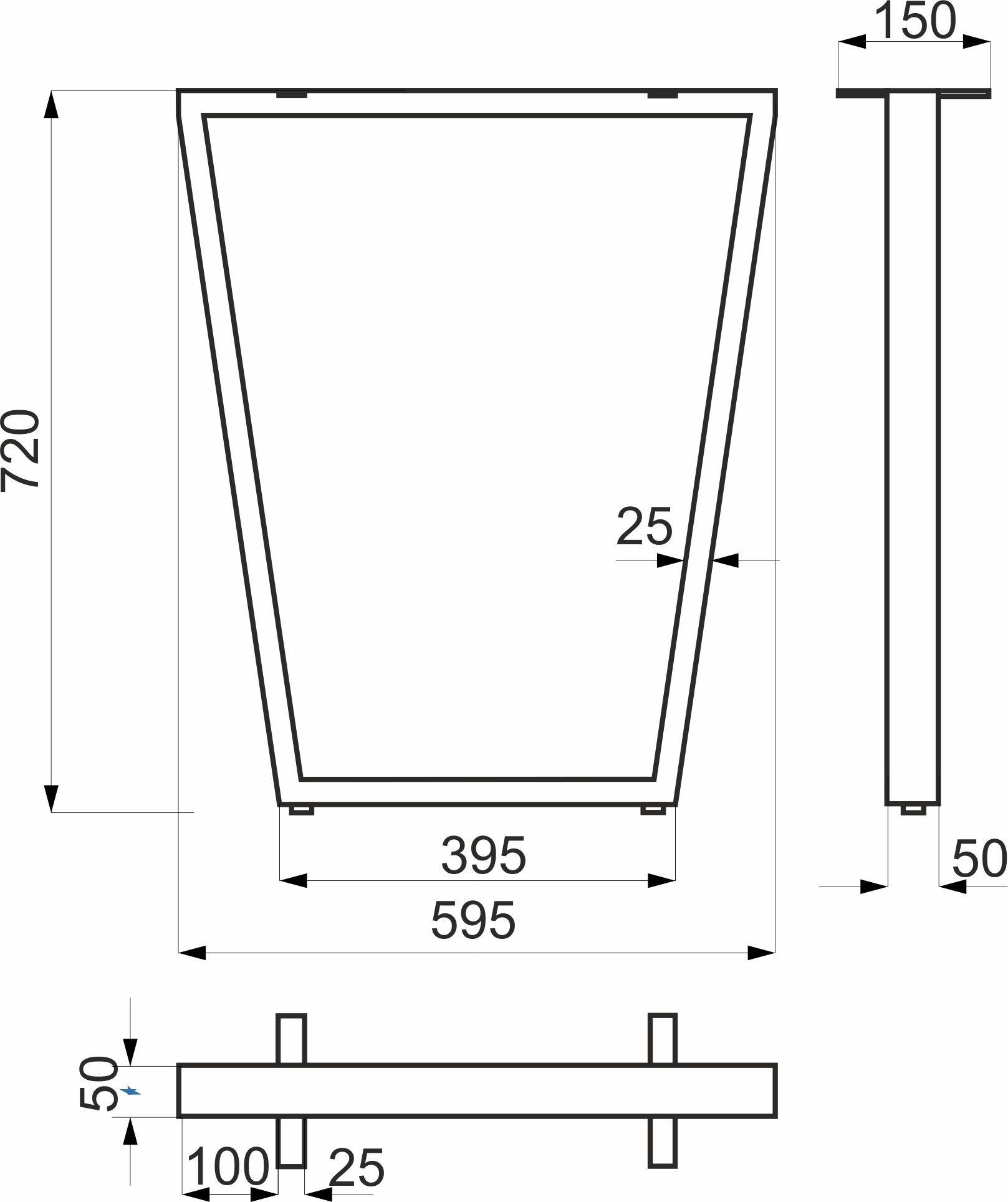 Подстолье изготовлено из металлического профиля 50*25мм.