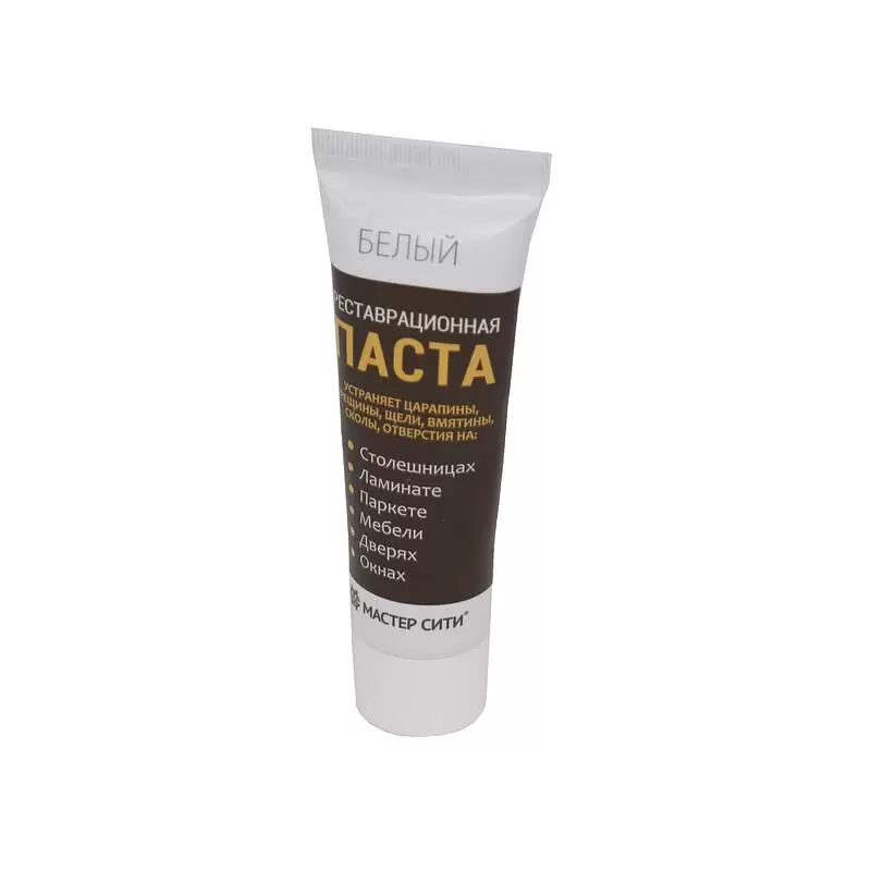 Паста мебельная реставрационная для заполнения и выравнивания средних и больших сколов (в т.ч. и угловых), вмятин, трещин, отверстий на деревянных, пластиковых и поверхностях из искусственного камня (мебель, двери, окна, столешницы, полы, искусственный камень), подверженных интенсивной эксплуатации.