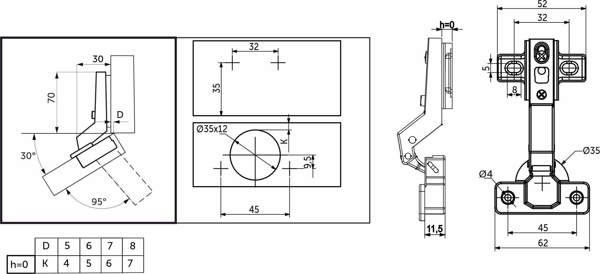 Петля угловая самозакрывающаяся с доводчиком и планкой - механизм для открывания фасада под определенным углом, в соответствии с конфигурацией мебельного изделия.