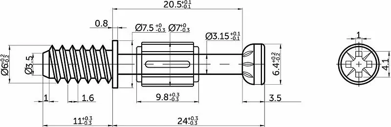 Шток эксцентрика (шпилька, винт) является составной частью эксцентриковой стяжки и подходит для всех эксцентриков (бочонков) диаметром 12 и 15 мм любой высоты от 10 мм до 17 мм.