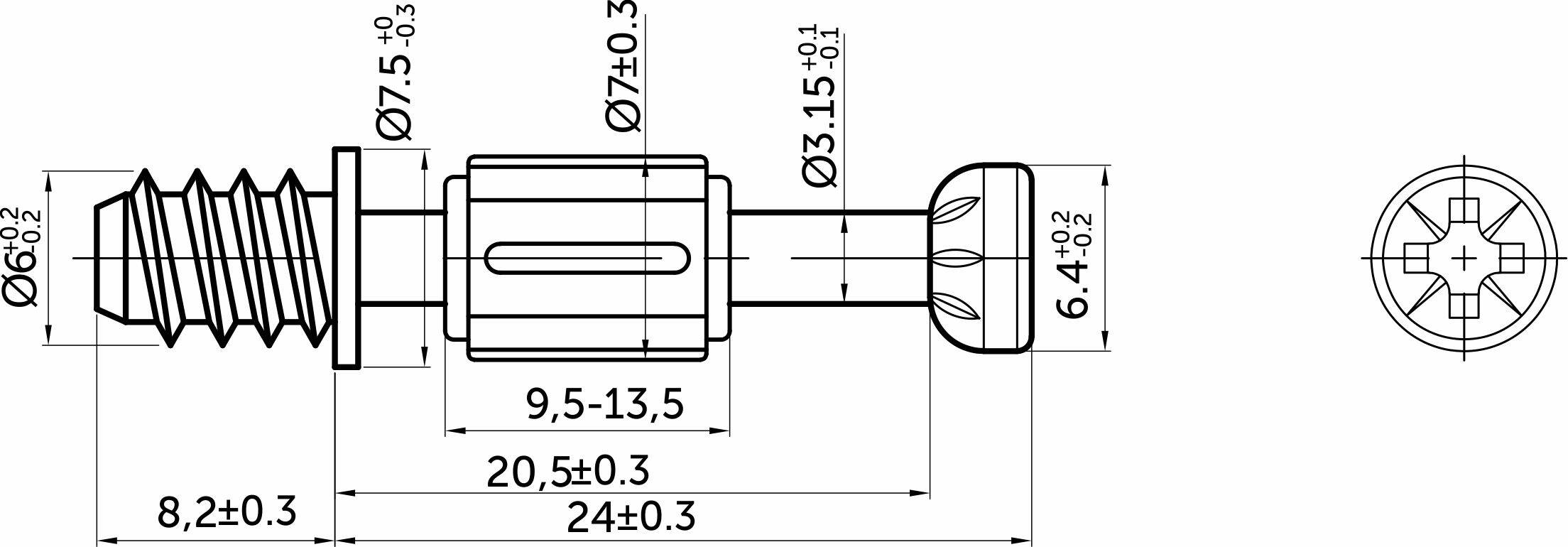 Шток эксцентрика (шпилька, винт) является составной частью эксцентриковой стяжки и подходит для всех эксцентриков (бочонков) диаметром 12 и 15 мм любой высоты от 10 мм до 17 мм.