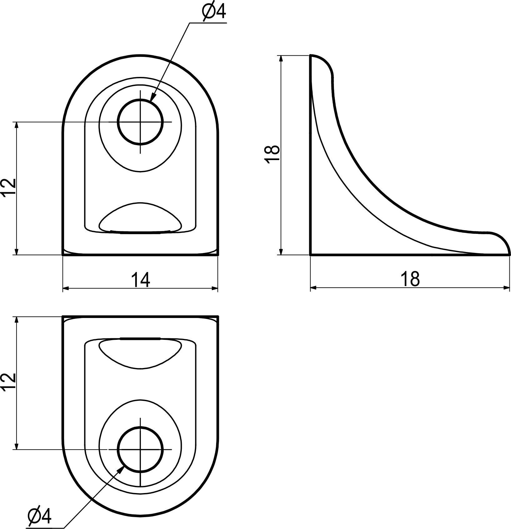 Уголок-полкодержатель предназначен для крепления деревянных полок, имеет два отверстия под саморез, цвет никель. Данный продукт является очень прочным соединением и в тоже время изящным и миниатюрным (все 18 мм длина полки и 14 мм ширина).