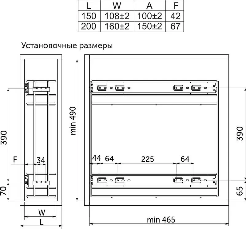 Установочные размеры: D470*W110*H490мм.