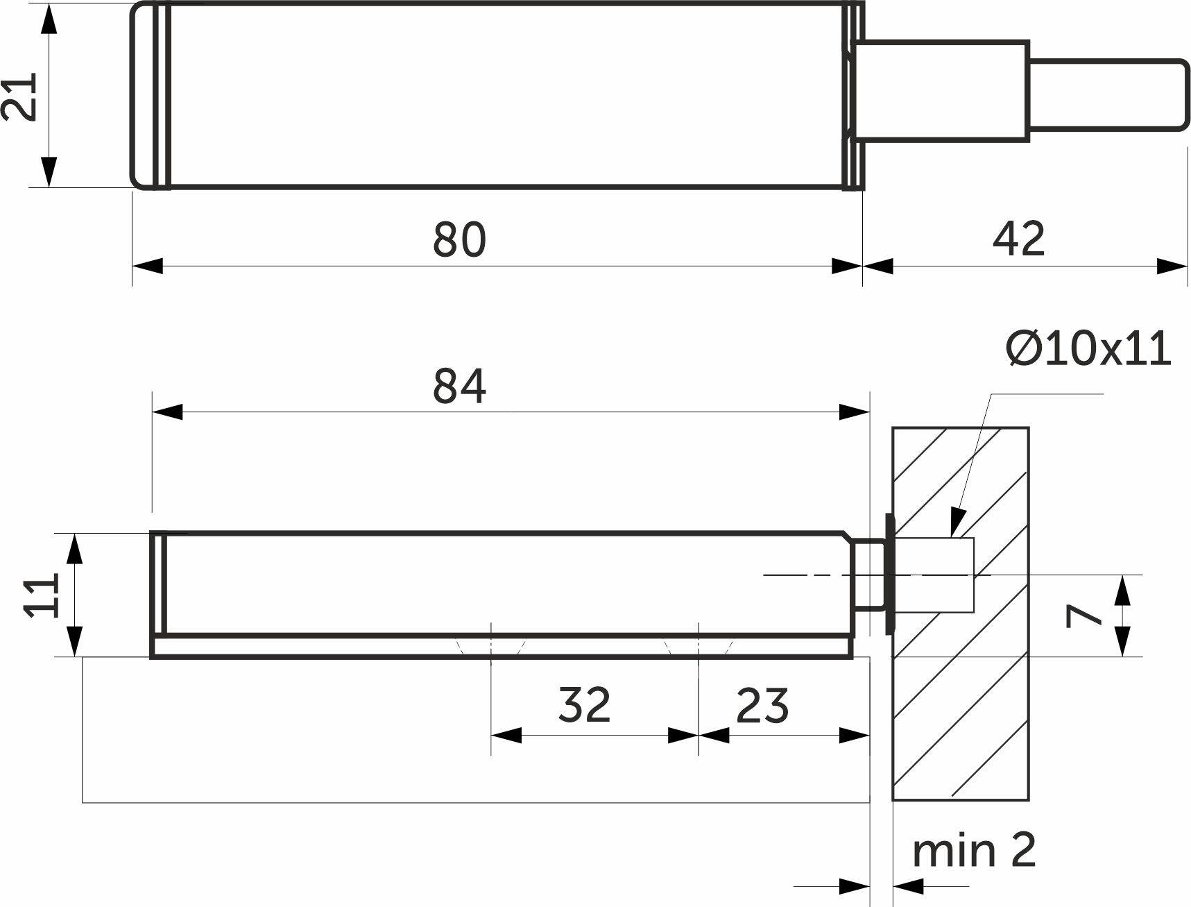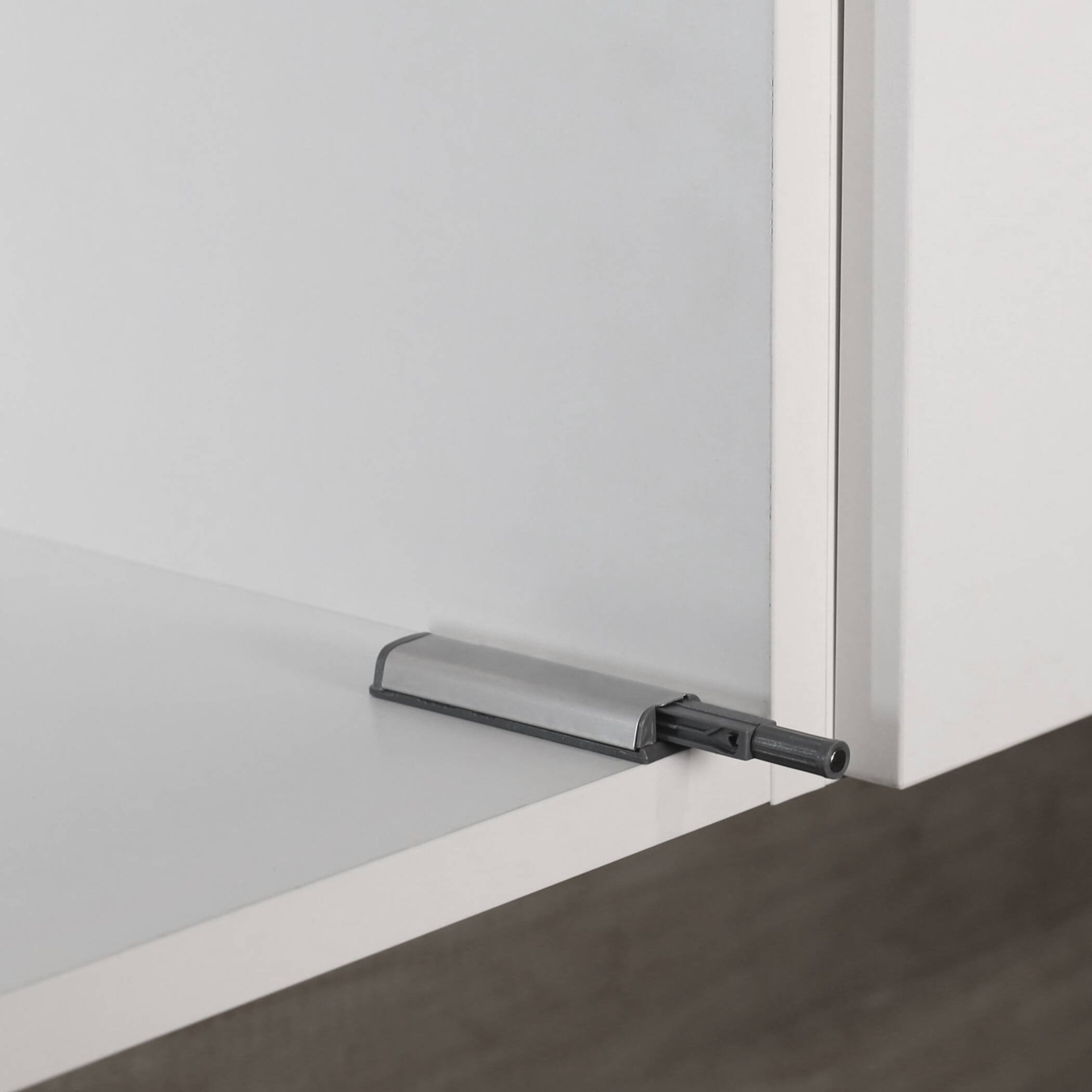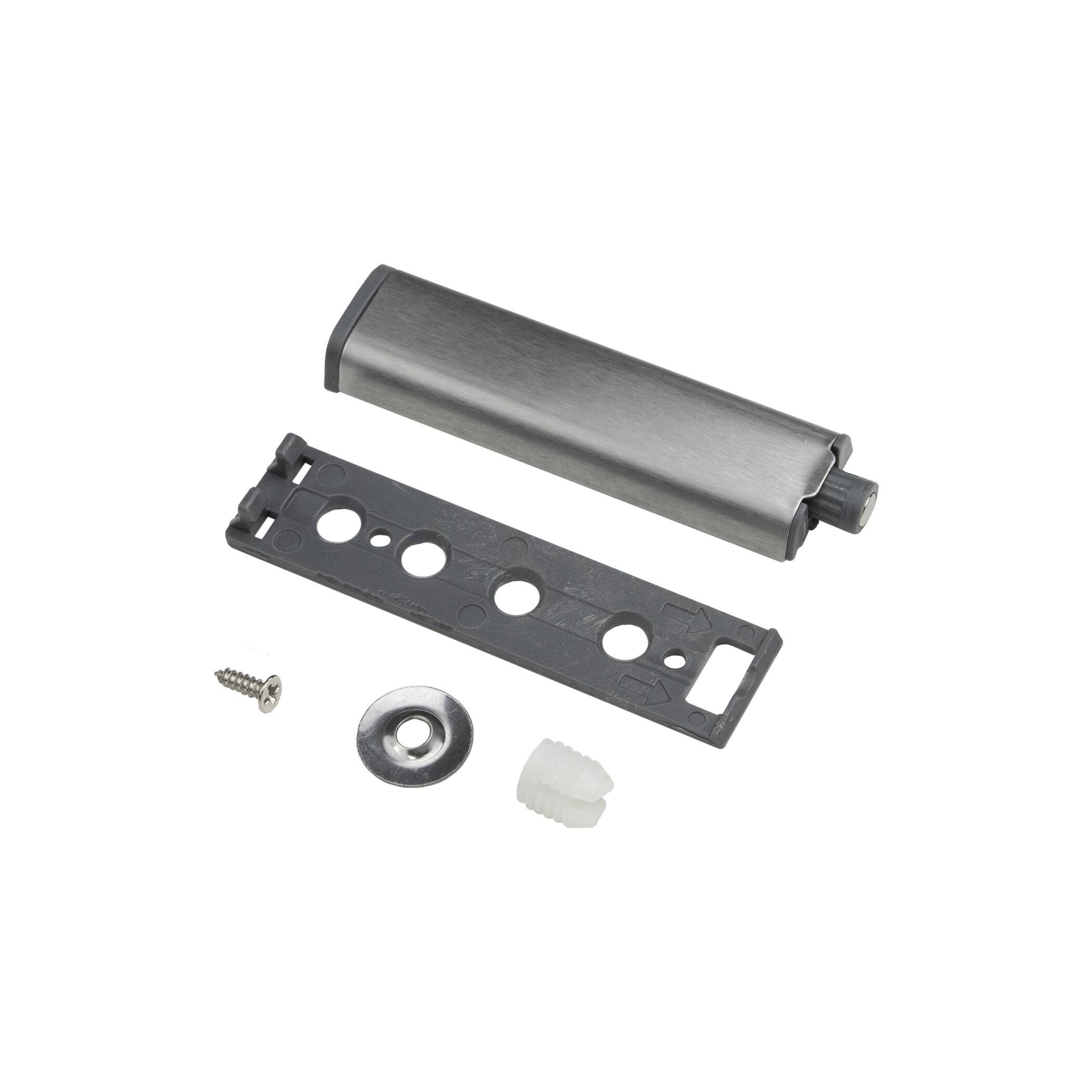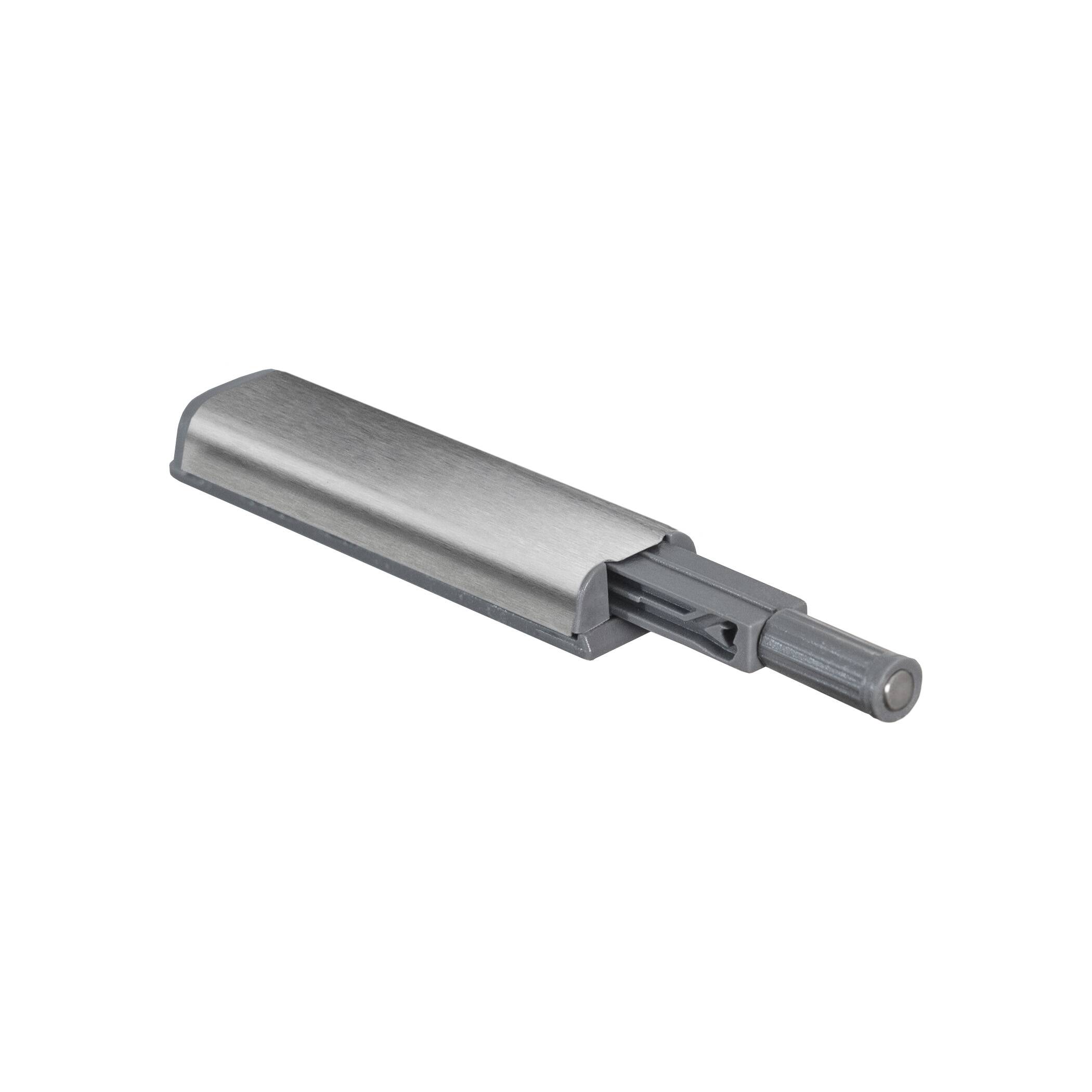 Магнитный толкатель по системе PUSH-TO-OPEN с узкой планкой. Корпус с накладкой из нержавеющей стали. Магнитный наконечник. Полный комплект в упаковке на скрытой планке. Встроенная регулировка зазора двери +5 мм. Подходит для установки в паре с петлей без пружины.