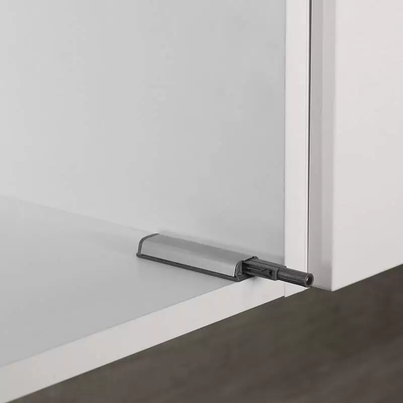Магнитный толкатель по системе PUSH-TO-OPEN с узкой планкой. Корпус с накладкой из нержавеющей стали. Магнитный наконечник. Полный комплект в упаковке на скрытой планке. Встроенная регулировка зазора двери +5 мм. Подходит для установки в паре с петлей без пружины.