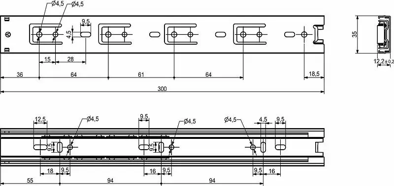 Направляющая для мебели GRIDLI изготовлена из холоднокатаной стали толщиной 0,65*0,65*0,65 мм, имеет резиновый фиксатор от самопроизвольного открытия. Фактическая высота данной направляющей 35 мм, а её длина – 300 мм.