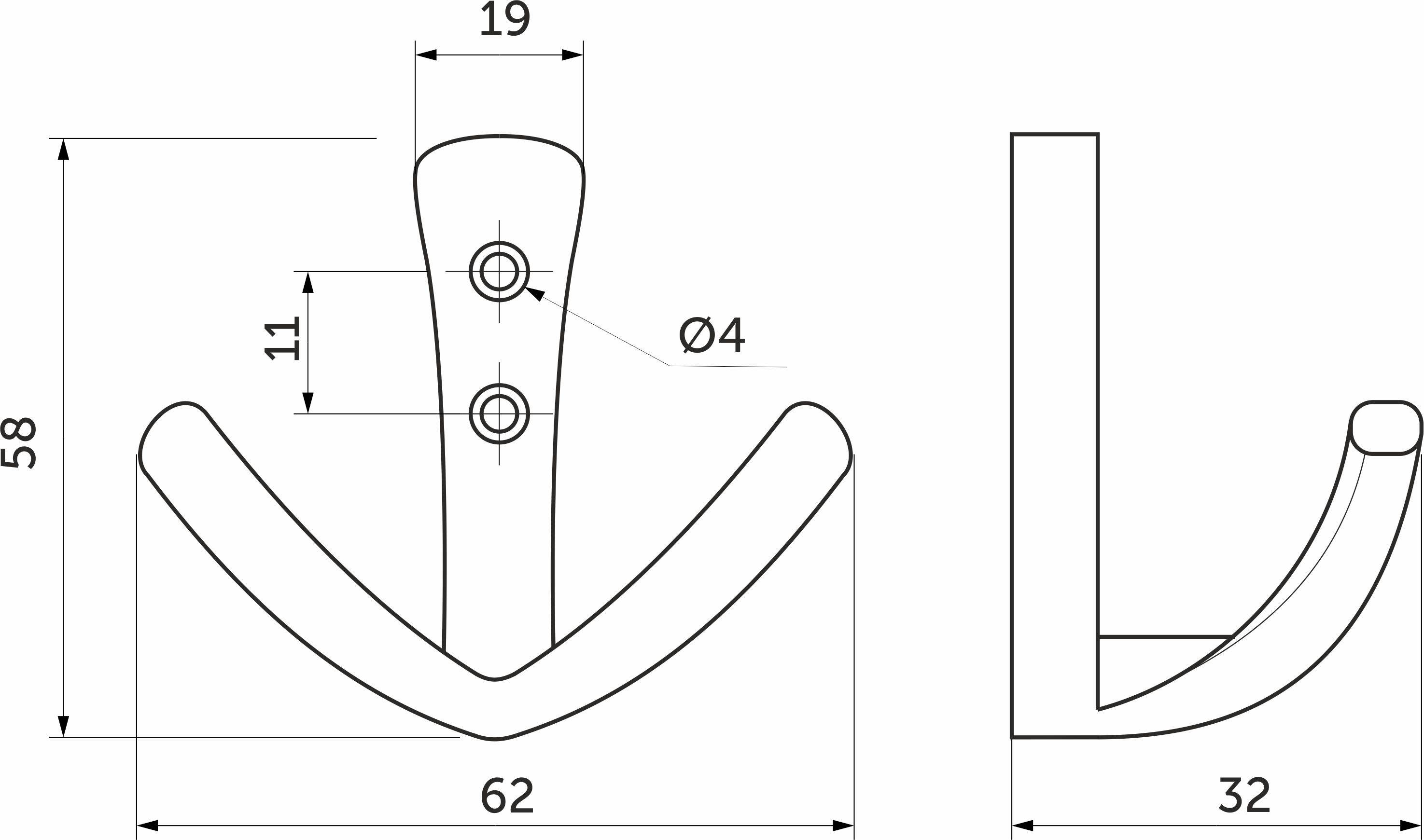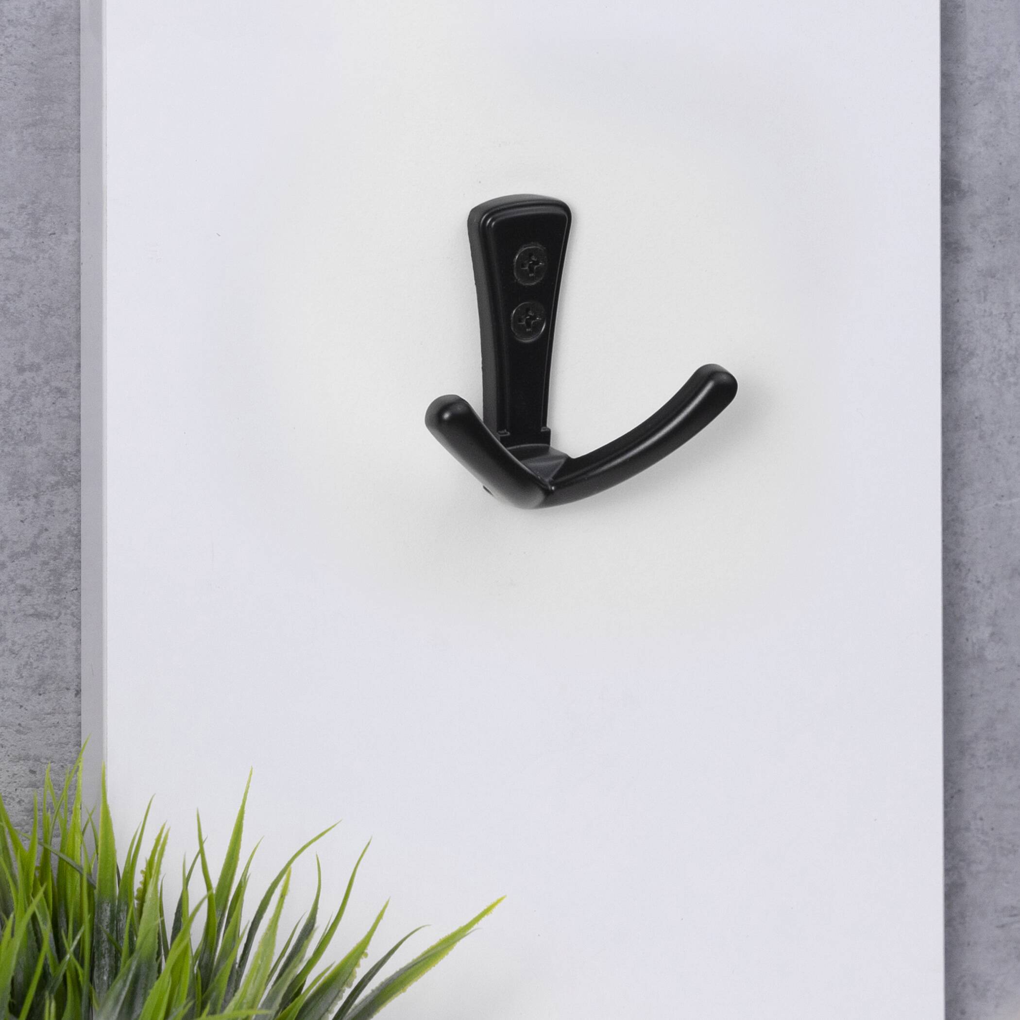 Двухрожковый металлический крючок Runa — это стильное и функциональное решение для вашего интерьера. Подходит для использования в ванных и гардеробных комнатах. Два изогнутых рожка обеспечивают удобное размещение одежды, сумок или аксессуаров, помогая поддерживать порядок в вашем доме. Лаконичный дизайн крючка Runa легко впишется в любой стиль, будь то современный минимализм или классическая элегантность. Материал - цинк-алюминий. Цвет - черный матовый. Крепление к поверхности с помощью шурупов. В комплекте: 2 шурупа 4*16. Упаковка: Пакет ПЭ запаянный, защитная foam-упаковка, винты в пакете из ПЭ. Максимальная нагрузка - 20кг.