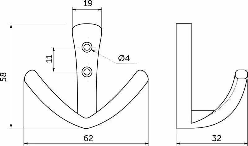 Двухрожковый металлический крючок Runa — это стильное и функциональное решение для вашего интерьера. Подходит для использования в ванных и гардеробных комнатах. Два изогнутых рожка обеспечивают удобное размещение одежды, сумок или аксессуаров, помогая поддерживать порядок в вашем доме. Лаконичный дизайн крючка Runa легко впишется в любой стиль, будь то современный минимализм или классическая элегантность. Материал - цинк-алюминий. Цвет - черный матовый. Крепление к поверхности с помощью шурупов. В комплекте: 2 шурупа 4*16. Упаковка: Пакет ПЭ запаянный, защитная foam-упаковка, винты в пакете из ПЭ. Максимальная нагрузка - 20кг.