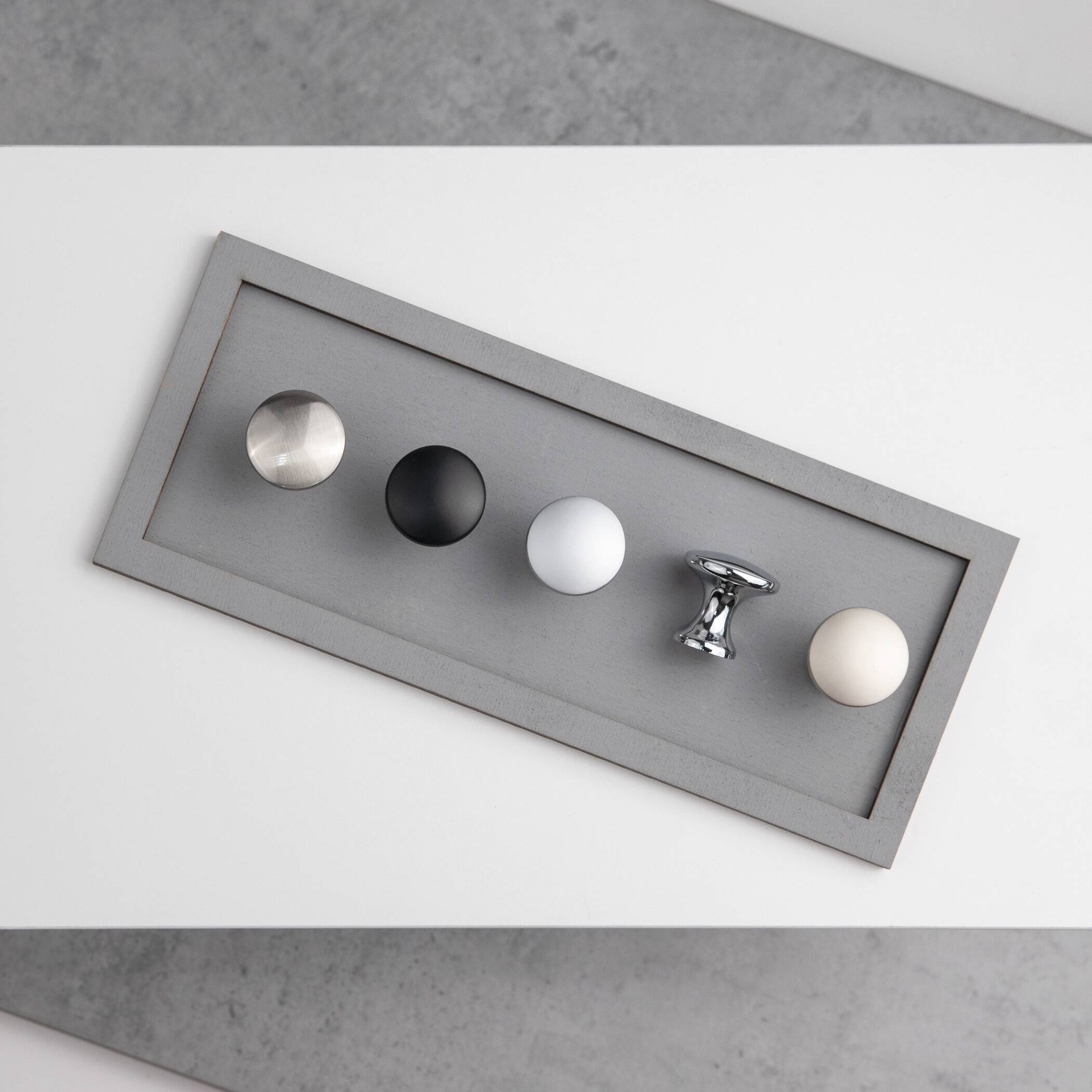 Компактный аккуратный вариант обтекаемой формы. Универсальная ручка-кнопка, которая впишется в любой интерьер и стиль.