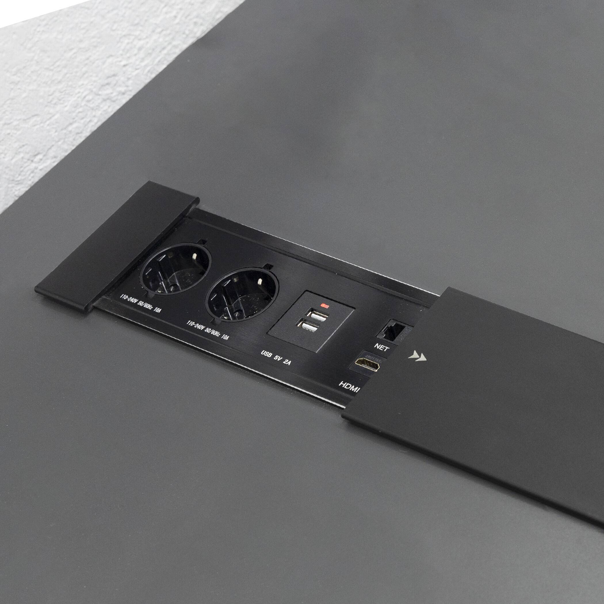 Наружный размер 280х100мм, монтажный размер 268х70х55мм, степень защиты IP20, длина кабеля 1,8м, электробезопасность 16A с заземлением и проводами с поперечным сечением 1,5 mm². тип гнезда: Schuko, USB 2 x 5V DC 2,1A, HDMI, LAN, цвет черный. Встраивается в кухонную, офисную мебель и мебель для дома.