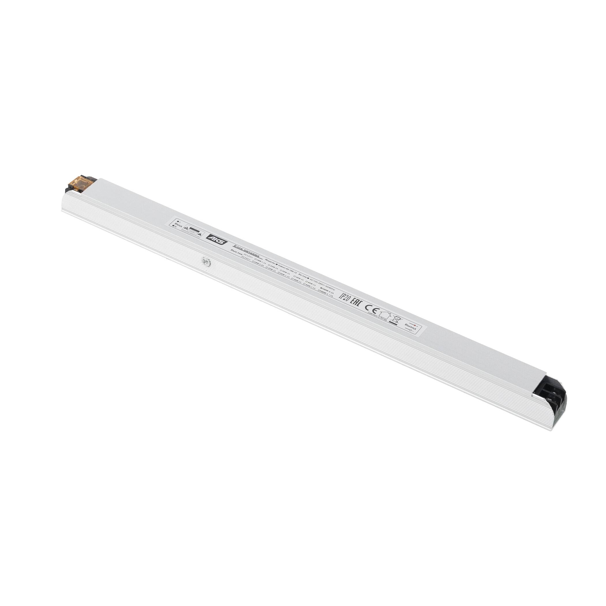 Размеры 345х21х21 мм. Вх.напряж. 176-264V AC, вых.напряж. 12V DC, мощность 100Вт, сила тока 8.33A, степень защиты IP20. Компактный блок питания для установки в узкие разъемы. Не имеет проводов для подключения, вместо них - зажимные клеммы.