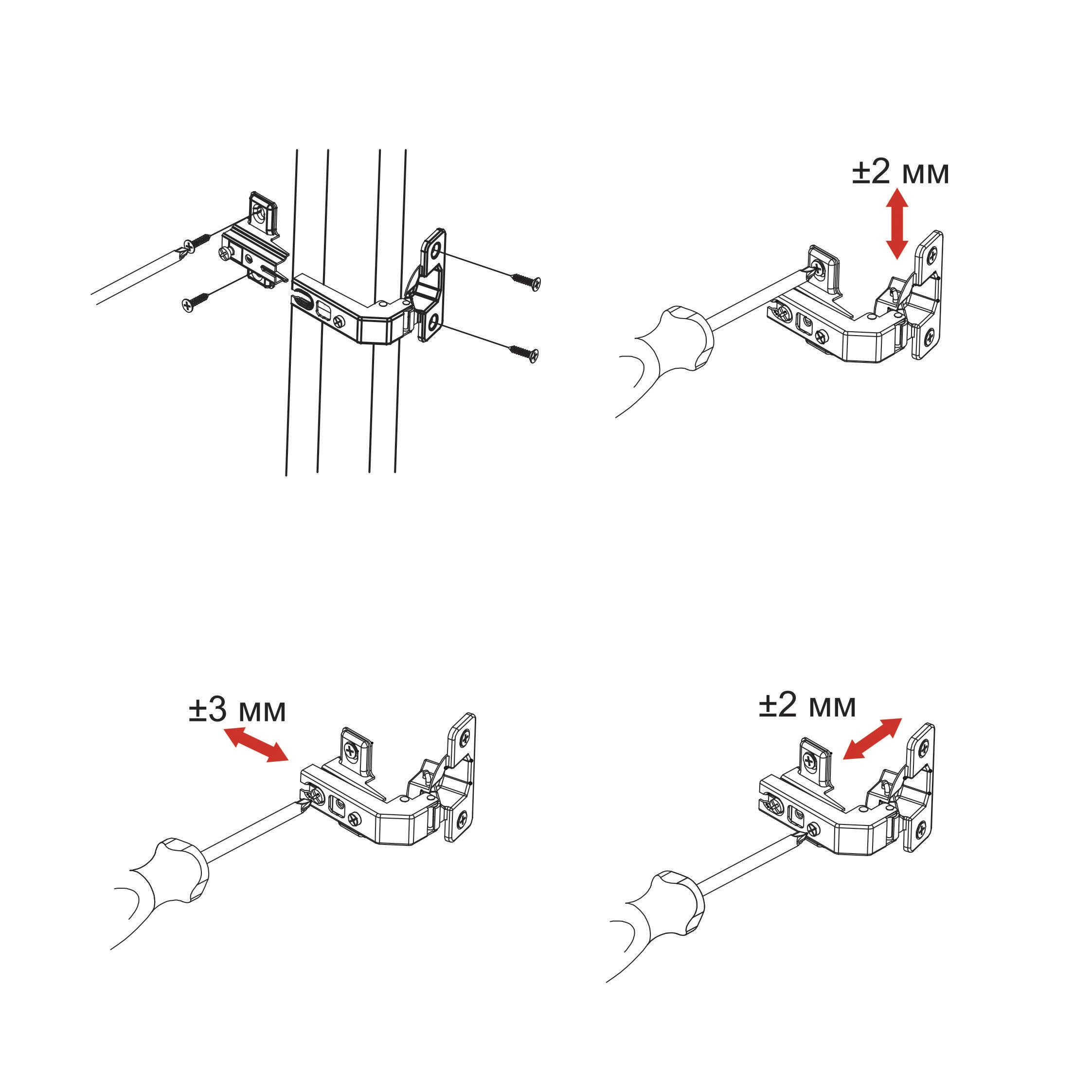 Петля угловая с доводчиком и системой надвижного монтажа slide on, с чашкой 35 мм. Межцентровое расстояние в чашке 45 мм. Петля для мебели изготовлена из высокопрочной холоднокатаной стали. Имеет встроенный демпфер, что обеспечивает плавность закрытия петли. Угол открывания 100 градусов. Устанавливается преимущественно под корпус с узкой фальшпанелью размером не менее 26 мм.